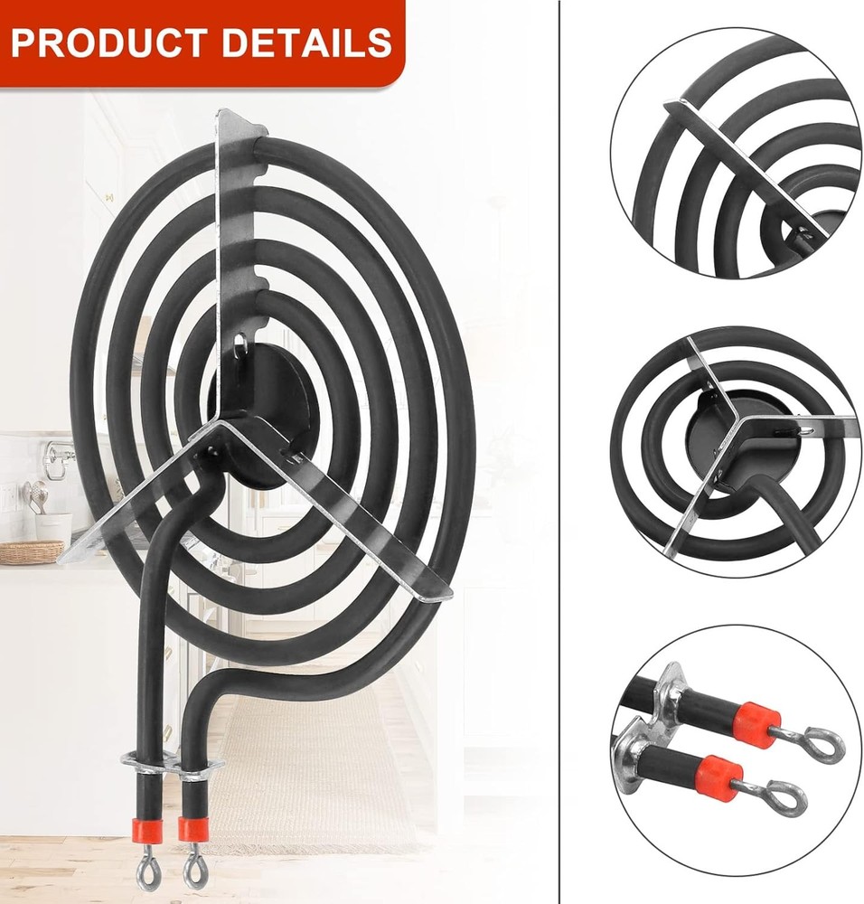 【Part Number】 SP21YA Electric Range Burner Element 8-in 4-Turns replace 325503, WB30X0253, WB30X5060, WB30X5095, ERS48Y21, TJ90SP21YA, SP21YA, 814153 etc 【Compatible Brands】Electric stove burners compatible with G.E & Ken-more & Hot-point & Ro-per & May-tag Electric Range Stove. Please verify the range burner element matches the one you are replacing before ordering. If you are not sure if it is suitable, contact us and we will check for you 【Warm Tips】The new burner element has a protective coating on it to protect the surface. On first use, the protective coating will evaporate with the high temperature and there may be a little smoke, this is normal as this is caused by the protective coating of the new burner element. Don't worry, just keep using it. Please disconnect the power when repairing 【Material Structure】Our electric burner replacement is completely designed with non-polluting, safe and long-lasting materials. Extends the service life of your range stove. Easy to install, saving time and money 【After Sale】If you are not satisfied with the electric range burner, contact us! We will show you our sincere attitude and satisfactory solution