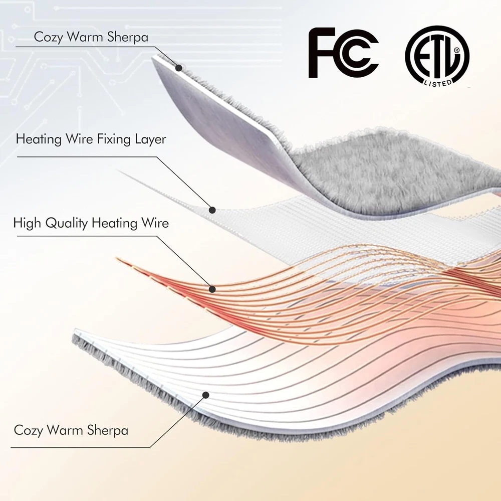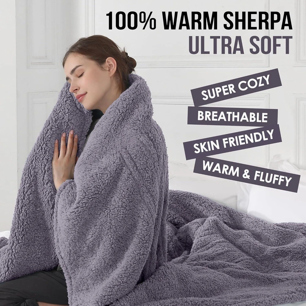 Electric Throw Blanket, Heated Blanket Sherpa with THROW-50x60, A-gray Violet Product Details Material: Sherpa Color: A-gray Violet Brand: ESTINGO Special Feature: Skin Friendly, Fade Resistant, Durable, Stain Resistant, Breathable Style: Modern WARMER FABRIC: This heated throw blanket is made from double layers of thicker sherpa, creating a soft and fluffy feel and further warmth. Whether you use it on an office chair, on a sofa in the living room or on a bed in the bedroom, the electric blanket throw at just 3.3lb provides you with warmth and ultimate comfort in a lightweight way. EASIER USAGE: This electric heated blanket is very easy to operate as it only has one button. The electric blanket has 5 heating setting functions to provide you with the most comfortable heating level at any time, and heating blanket will automatically shut off after 4 hours in case you forget. FASTER HEATING: This heated blanket throw uses thermal fabric and better quality heating wire, which can heat up quickly within 5 minutes, making you feel warm quickly (86-122°F). The U-shaped coil structure makes the heat more even, giving you the most comfortable care. BETTER PROTECTION: This electric throw blanket has passed strict ETL and FCC safety certifications, and has overheating protection and short-circuit protection. Once an abnormality occurs to the electric blanket, it will automatically shut down. MORE ELEGANT GIFT: This electric heated blanket is available in multiple sizes and colors, and is delivered in an elegant gift box. Electric blankets are perfect gifts for women, men, mothers, or anyone else's birthday, Thanksgiving, Christmas and so on. NOTE: Since we have set an overheating protection function on the controller, if you feel it is not warm enough when using the electric blanket for the first time, please turn it off for 12 hours and then start it again, the temperature will increase significantly!
