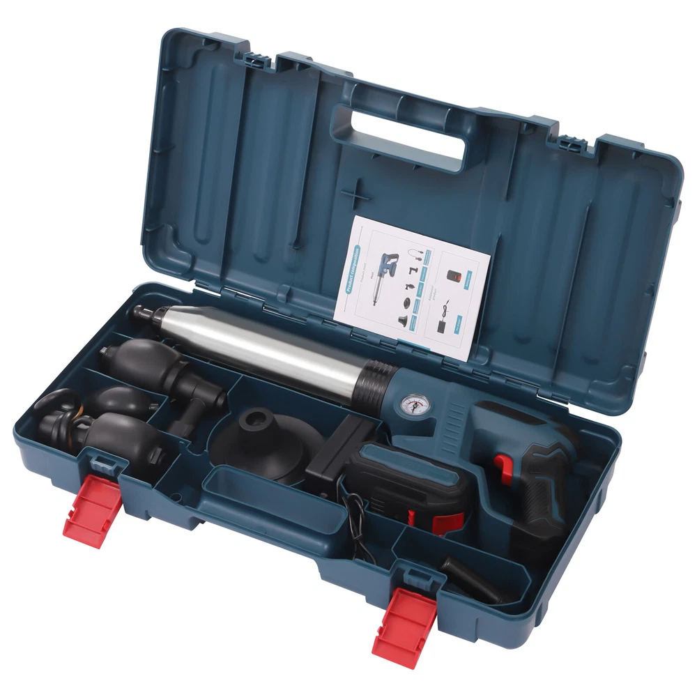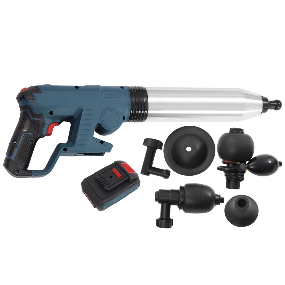 Specification Main Material: ABS, Stainless Steel Color: Blue Model: LD-001 Start Mode: Electric Plug Type: US Voltage: 110v, 60Hz Power Source: 2000mAh Lithium Batteries (Included) Package Size: 53*26.5*11cm/20.87*10.43*4.33in Product Size: 15*68 cm/5.91*26.77 in Toolbox Size: 53*26*11cm/20.86*10.23*4.33in Gross Weight: 3.2kg/7.05lbs Net Weight: 3.1kg/6.83lbs Electric Toilet Plunger Air Drain Blaster High Pressure Sink Dredge Clog Remover Descriptuion Electric Toilet Plunger Air Drain Blaster High Pressure Sink Dredge Clog Remover Description You must also have a meltdown because of clogged pipes at home! This toilet plunger allows you to easily get rid of this embarrassing situation and no longer have to pay a huge amount of money to the repairman. You only need a short time to raise the pressure to 0.4MPA, then pull the trigger and release the high-pressure air. It's that easy! Key Features Efficient Cleaning Power : The toilet plunger uses the power of high-pressure compressed air to blast clogs quickly and easily, with a plunger tip that ensures a seal for tremendous pressure. It is faster and more effective than traditional plungers. Easy to Operate : It's also great for beginners and master plumbers, allowing them to use it with less effort. It takes less time to raise the pressure to 0.4 MPA, then you pull the trigger to release the high-pressure air. It's that simple! User-friendly Design : The reinforced handle, the threaded and the non-slip design make the toilet plunger easy to pump. The non-slip h andle incorporates an ergonomic design for a comfortable grip. Quality Material : It is made of an ABS plastic handle and natural rubber sealing head, reusable without asking for help from a plumber and easy to clean. The stainless steel wall of the barrel is anti-cracking, furth er extending its service life. Ultra-long Life Span : It uses the 2000mah lithium battery, which can be used more than 30 times when fully charged. Therefore, it is especially suitable for repairers to use without worrying about the trouble of frequent charging. Fully Equipped : It has 4 replaceable plunger heads for unclogging all kinds of pipes, toilets, floor drains, bathrooms, sinks, washbasins, vegetable sinks, drains, etc. Therefore, it can meet almost most of your unclogging needs. Easy to Store : The ring trigger on the plunger can also be used as a hanging buckle, which can be hung on the wall after use to prevent the plunger from lying on wet surfaces. Anti-splash : It has a built-in expansion plug and is sealed, which allows it to expand before unclogging, seal the pipe opening and prevent wastewater backflow and splash. Energy-saving and Environmental Protection : It makes you no longer need to use harmful chemicals, so it frees you from the danger of corroding pipes or endangering your family from now on. Details Air Pressure Gauge : The air pressure gauge is designed upward to make it easier for you to see while using it. It allows accurate control of pneumatic activity and operating forces to avoid spillage and damage. Removable Battery Pack : The battery pack at the bottom can be removed for charging, which is very convenient. Toolbox : It is equipped with a specially customized toolbox that can store all the tools inside very well, so it is very convenient for you to carry. Application It is suitable for all occasions, such as toilets, squats, kitchens, swimming pools, and wash basins. It can deal with various blockages caused by various garbage such as hair, cloth, tea leaves, leaves, grease, and oil. Specification Main Material: ABS, Stainless Steel Color: Blue Model: LD-001 Start Mode: Electric Plug Type: US Voltage: 110v, 60Hz Power Source: 2000mAh Lithium Batteries (Included) Package Size: 53*26.5*11cm/20.87*10.43*4.33in Product Size: 15*68 cm/5.91*26.77 in Toolbox Size: 53*26*11cm/20.86*10.23*4.33in Gross Weight: 3.2kg/7.05lbs Net Weight: 3.1kg/6.83lbs Package Included 1* Toilet Plunger 1*Battery Pack 1* Toilet Unclogger Head 1* Washbasin Unclogger Head 1* Squatting Toilet Unclogging Head 1* Floor Drain Unclogger Head 1*Charger 1*Linker 1*Toolbox 1*English User Manual Notes 1. Unclogging toilets, kitchen sinks, floor drains, and bathtubs require the pointer of the barometer to reach 4-5. Please use the appropriate plunger head to clean up, and try to insert the rubber plunger head tightly into the pipe. Do not leave a gap, otherwise the water may splash out with the air. 2. When unclogging the toilet, please pay attention to the fit with the toilet surface. Just tilt 45 degrees when using. 3. If the pipe is in a semi-clogged state, it is recommended to put some toilet paper and debris to make the pipe nearly fully clogged so that the product can be used more effectively. 4. Using more water will not be easy to splash. When using this product for the first time, it is recommended to use other items to cover up so as not to splash themselves. 5. Try not to use more than 10 times in a row so as not to damage the machine by high temperatures. Let it dry for more than 30 minutes before use. 6. Do not point the air release button at the mouth, nose, ears and eyes. Use it with parents when underage. 7. Please note that it cannot be used to unblock blockages caused by hard plastic, glass, metal objects or construction debris. 8. Please choose a wide range of air pressure according to the actual situation and try several times until the unclogging is successful. 9. If you want to unclog a sink that is in a clogged state (in case there are two sinks connected together), please block the other sink first and then unclog it. 10. Please allow the slight color difference caused by the shooting light and 1-3cm error due to manual measurement, and make sure you do not mind before ordering. Payment Delivery details Terms of sales About us Contact us Payment We accept ebay payment 。 Fees such as import duties, taxes are not included in the item price or shipping costs. These charges are the buyer's 