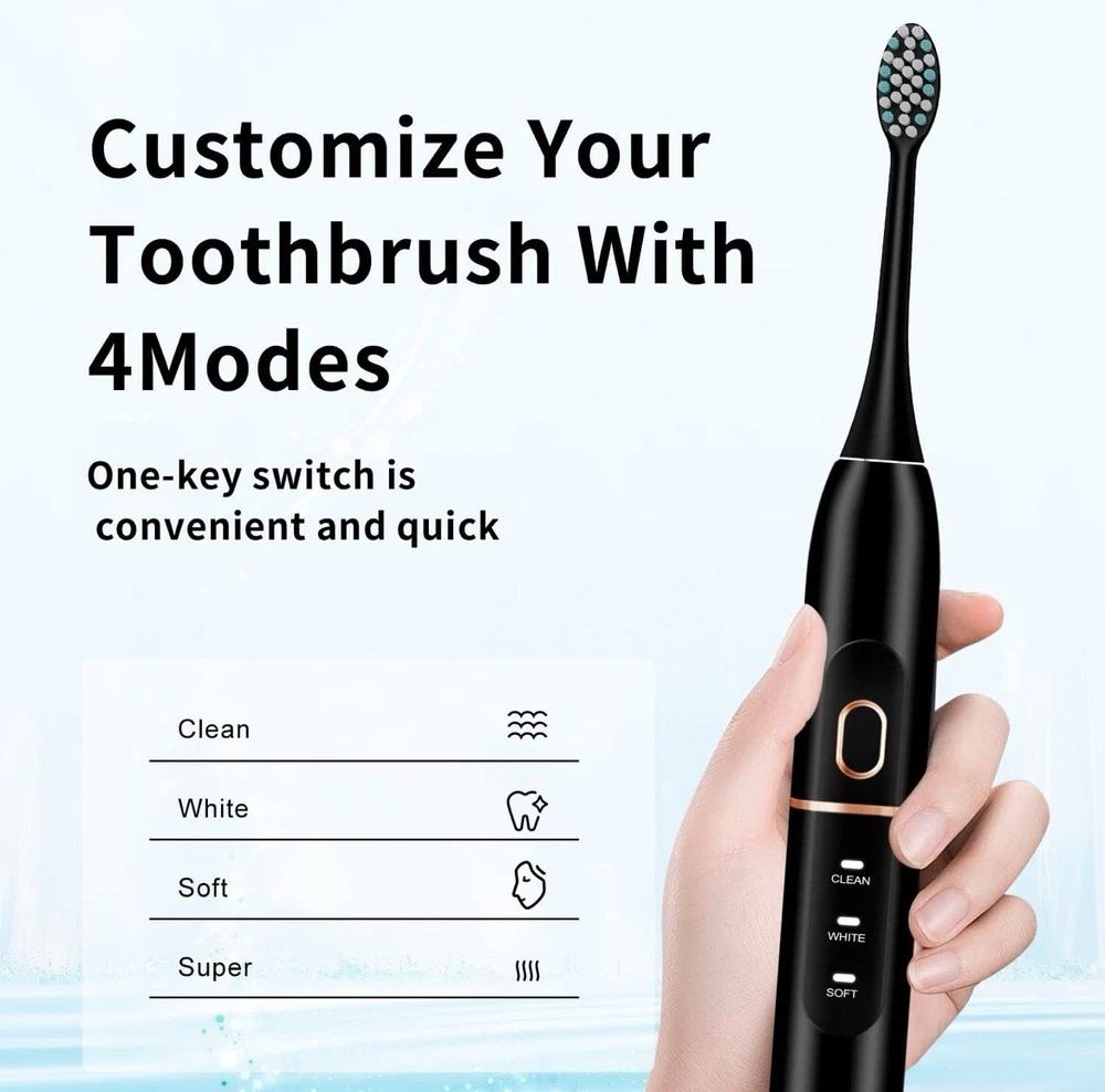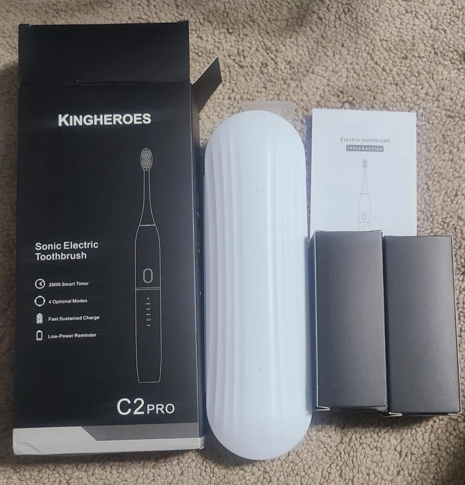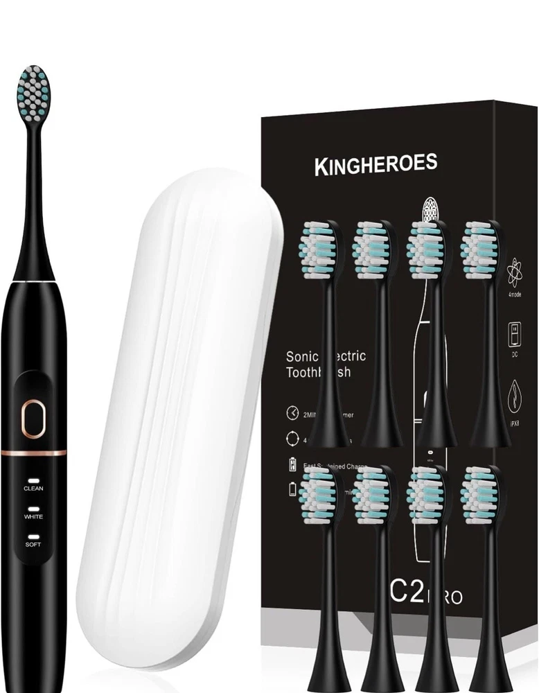 Materials & Care Bristle Material Nylon Handle Material Plastic Style Color Black Measurements Number of Pieces 1 Item Weight 3.2 ounces Item Dimensions 8.86 x 4.35 x 1.77 inches Unit Count 1.0 Count Number of Items 1 Item details Manufacturer SBXDZ Customer Reviews 4.3 out of 5 stars 9,995Reviews Best Sellers Rank #29 in Health & Household (See Top 100 in Health & Household) #1 in Sonic Toothbrushes Target Audience Unisex-Adults Package Type Name Pouch Brand Name kingheroes Age Range Description Adult, Kid Included Components Travel Case Features & Specs Movement Type Vibrate Operation Mode Automatic Number of settings 4 Item Firmness Description Soft Toothbrush Head Shape Oval Special Features Brushing Timer Power Source Battery Powered