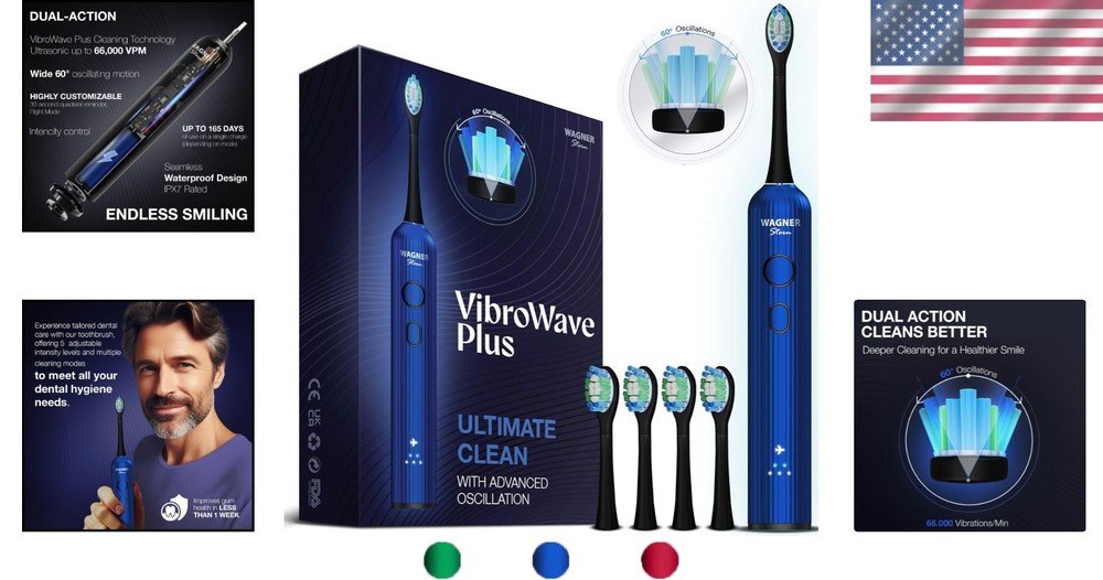 Electric Toothbrush Soft Bristle Waterproof Sonic Vibration 4 Brush Heads Adult ‹ › ‹ › ‹ › ‹ › ‹ › ‹ › ‹ › ‹ › Electric Toothbrush – VibroWave Plus Soft Bristle Waterproof Sonic Vibration 4 Brush Heads Adult Features: Dual-Action Cleaning Technology: High-frequency vibrations up to 66,000 times per minute combined with a 60° oscillating motion deliver an exceptional cleaning experience. Superior Consistent Performance: Powered by a robust motor for a strong and stable brushing force, ensuring up to three times the cleaning power of standard electric toothbrushes. Soft Brush Heads: Four soft-bristle brush heads are included, perfect for sensitive teeth and gums, delivering gentle yet effective cleaning. Smart Timer & Customizable Features: 2-minute smart timer with a 30-second quadrant reminder for a thorough clean, along with a Flight Mode for safe air travel. Seamless Waterproof Design ( Rated): Minimalist design that is easy to clean and use in the shower or bath without any hygienic concerns. Benefits: Achieve a dentist-recommended clean that effectively removes plaque and enhances gum health. Enjoy consistent performance regardless of brushing resistance, ensuring a deep clean every time. Gentle brushing experience ideal for sensitive teeth and gums, allowing you to maintain oral hygiene comfortably. Time your brushing for optimal effectiveness, supporting good dental practices. Convenient for travel, fitting seamlessly into any carry-on without adding unnecessary weight. Why Choose the VibroWave Plus? Elevate your oral care routine with the VibroWave Plus Electric Toothbrush, engineered with advanced technology to provide a dentist-level clean right at home. With exceptional dual-action cleaning capabilities, superior motor performance, and soft brush heads tailored for comfort, this toothbrush is the perfect investment for those who seek the best in oral hygiene. Designed with the modern traveler in mind, its compact, waterproof, and user-friendly features ensure that you can maintain your smile anywhere life takes you. Make the change to efficient, gentle, and thorough brushing—choose the VibroWave Plus today! Shipping Free & Fast Shipping - We offer free shipping to most of the USA with a normal delivery time of 3-7 days. However, due to the current situation, additional delivery time (up to 3 weeks) may be required for some items. Alternative Carriers - We may use alternative carriers (e.g. USPS, FedEx, UPS, etc.) to ensure your package arrives safely and on time. Due to the use of multiple carriers, we are unable to provide a tracking number automatically. Handling Time - Orders are processed and shipped within 1-2 business days of receiving cleared payment. Shipping Restrictions - Shipping to Alaska, Hawaii, Puerto Rico, Guam, and other US territories may incur shipping charges or delivery restrictions. Please contact us before ordering, or your order can be refunded/cancelled. State Restrictions - There may be restrictions based on your state of purchase. For example, certain items may not be shipped to California due to state regulations. Contact for Tracking Updates - If you require tracking updates or have any concerns about the delivery of your order, please feel free to contact us, and we will be happy to assist you. Return 30-Day Hassle-Free Returns - We want you to be completely satisfied with your purchase. If you are not, you can return the item within 30 days of receiving it for a full refund or exchange. Easy Return Process - To start a return, simply contact us and we will provide you with a prepaid return shipping label and detailed instructions. Restocking Fee - There are no restocking fees for returns. However, the buyer is responsible for return shipping costs if the return is not due to a seller's error. Refund Processing Time - Refunds will be processed within 5 business days of receiving the returned item in its condition. Payment We accept all major credit cards, PayPal, and Apple Pay for your convenience. Your payment information is secure and encrypted to ensure a safe and seamless transaction. Please complete your payment within 3 days of purchase to avoid any delays in shipping. Feedback Your feedback is extremely important to us. We strive to provide the best products and customer service possible. If you are satisfied with your purchase, please take a moment to leave us a positive review. If you have any concerns or issues with your order, please contact us before leaving negative feedback. We are committed to resolving any problems and ensuring your satisfaction. Contact Us If you have any questions or concerns, please feel free to out to our customer support team. You can contact us through the eBay messaging system. We are available Monday to Friday, 9:00 am to 5:00 pm EST, and we will do our best to respond to your inquiry within 24 hours. Buy it now and enjoy a pleasant shopping experience! Unit Quantity: 1 Power Source: Battery Power: 0.5 W Features: Rechargeable,Smart Timer,Compact Design,Customizable Travel Features Handle Material: ABS Plastic Bristle Material: Nylon Type: Electric Toothbrush Motion: Sonic Number of Speeds: 1 Color: Moonlit Blue