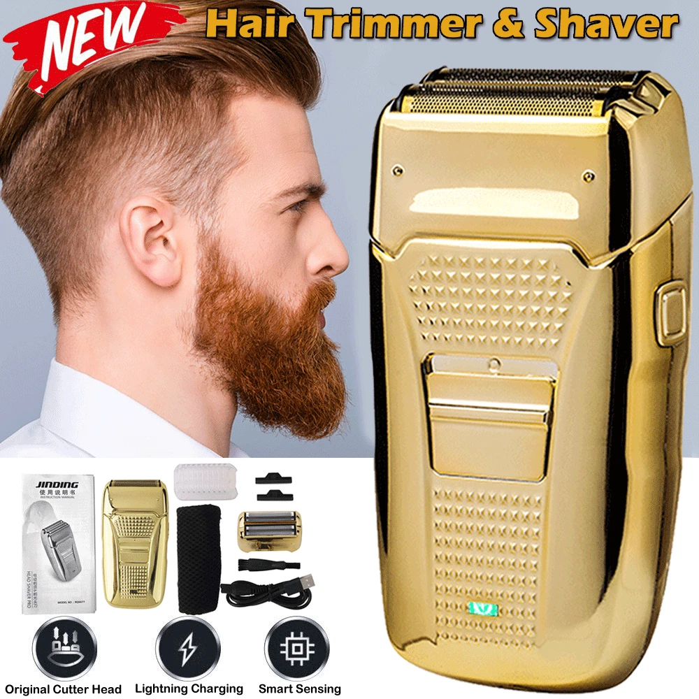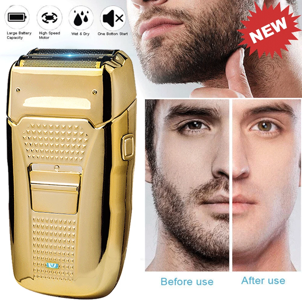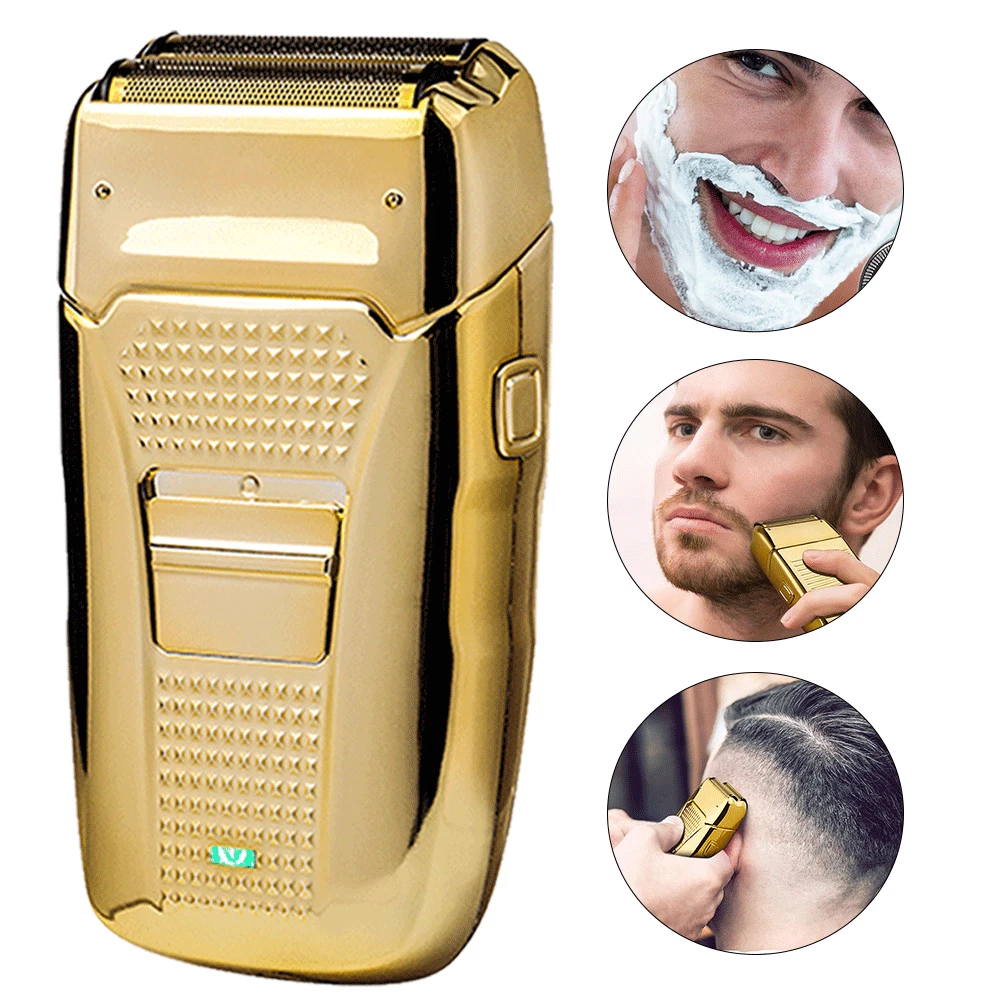 Body Area: Back, Body, Chest, Face Head Type: Beard Trimmer Item Length: 3 in Model: Electric Twin Balde Department: Men Features: Rechargeable, Adjustable Speed, Built-In Moisturizing System, Cleaning Indicator, Cleaning System, Cordless, Dual Voltage, Folding Blade, Hair Trimmer Option, LED Display, Pivoting Head, Low Battery Indicator, Quick Charging Time, Replacement Blades, Smartlight, Swivel Cord, Travel Case, Travel Size, Washable, Waterproof, Wet/Dry Type: Shaver Kit Color: Gold Custom Bundle: No Country/Region of Manufacture: China Motor Type: Rotary Power Source: USB Charging Brand: Unbranded Number of Heads: 1