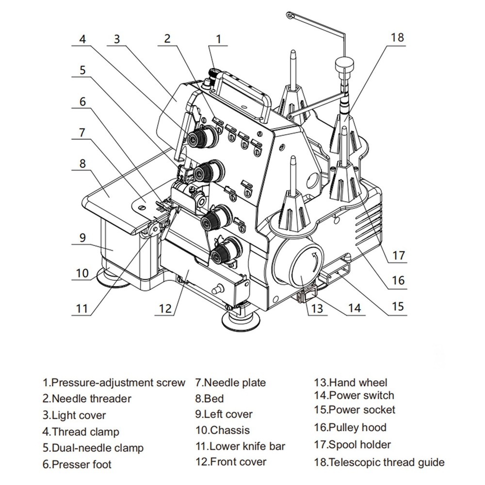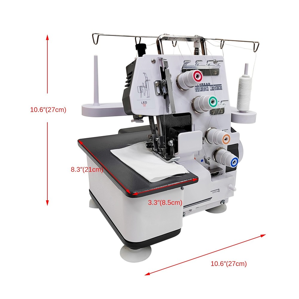 Electric Twin-needle Edge Locking Machine 4 Thread Overlock Machine Max 0.13'' Our overlock machine that offers a new experience in fabric edge finishing. It features multiple spools and utilizes a unique four-thread sewing process to provide a more secure edging effect for fabric edges, effectively preventing thread loosening and significantly enhancing the durability of the fabric. Whether you're a home sewing enthusiast creating personalized clothing or pillows, or a small-scale garment factory engaged in mass production, this machine can handle the task with ease. It is easy to operate, featuring clear indicator marks and adjustment knobs, allowing you to effortlessly adjust sewing parameters to accommodate fabrics of varying thicknesses and materials. Product Parameters Voltage: 110V Power: 120W Sewing Speed: 1200 stitches/minute Material Thickness Capacity: 0.13"(3.5mm) Drive System: Electric drive Weight: 21.16lbs(9.6kg) Presser Foot Lift Height: 0.13"(3.5mm) Stitch Width: 0.15"(4mm) Thread Count: 4-thread Needle Count: Twin-needle Product Structure Product Features - This machine is a multi-functional overlock machine with good performance. It can create three-thread and four-thread overlock stitch by using needle bar thread-pickup, double needle, 2-looper thread take-off and automatic edge cutting(optional). - Depending on the requirements of sewing, it is also able to make three-thread overedging stitch seam and fine close overlock stitch seam through proper adjustment. - This machine is suitable for overlocking, overedging and chain stitch seaming of fabrics with different thickness, it is really the ideal multi-functional sewing equipment for garment processing enterprises and individual businesses. Advantages Exceptional Sewing Performance - Reliable four-thread sewing: Utilizing a four-thread sewing process, this method produces a tighter, more secure hem compared to the common three-thread sewing, significantly enhancing the strength of fabric edges. It effectively prevents thread loosening, extending the lifespan of garments, curtains, and other fabrics, making it particularly suitable for clothing production or home textile manufacturing that demands high durability. - Diverse stitch options: Capable of producing various stitch patterns to meet different hemming needs. Whether it's standard straight-line hemming or special stitches requiring enhanced aesthetics, it can be easily accomplished, adding a unique style to your fabrics. User-friendly & Convenient Operation - Humanized design: The machine features clear indicators and adjustment knobs on its surface, such as the thread tension adjustment knob. Even first-time users can quickly understand and operate the machine, easily adjusting parameters to accommodate fabrics of different thicknesses and materials, significantly reducing the learning curve. - Visual work area: Equipped with a spacious work platform, it provides ample operating space for placing fabric during sewing operations. Additionally, the work area offers an unobstructed view, allowing users to clearly observe the sewing process, promptly identify and resolve issues, and ensure smooth sewing operations. Compact Structural Design - Stable and reliable machine body: The machine body is constructed using high-quality materials, ensuring a sturdy structure. During high-speed operation, it effectively reduces vibration and noise, guaranteeing the stability and smoothness of sewing operations while extending the machine's service life. - Reasonable bobbin layout: The bobbin position is scientifically designed, facilitating threading and bobbin replacement, minimizing tangling issues during threading, and improving work efficiency. Additionally, the large spool capacity reduces the hassle of frequent spool changes, making it suitable for prolonged continuous operation. Wide Range of Applications - Home Sewing: For home users passionate about sewing, this overlock machine is an indispensable tool for creating personalized clothing and home decor items (such as cushions and tablecloths), delivering professional-grade overlocking results to meet diverse sewing needs. - Small-scale garment processing: In small-scale garment factories or tailoring shops, this binding machine, with its efficient sewing performance and stable operation, can be used for binding processes in bulk garment production, effectively improving production efficiency and ensuring product quality. Precautions 1. If there are any problems during the sewing process, please cut off the power supply first! 2. The power switch of this model is located on the right side of the machine, which controls the lighting but not the motor. The motor is controlled by the foot pedal. 3. This model is a professional overlock sewing machine. The threading sequence and position of the overlocker must be correct. 4. If sewing results are poor, first replace with new high-quality needles and premium-grade sewing machine threads. 5. Please select appropriate needle and thread combinations for different fabric types. 6. When fabric edges show irregular trimming, immediately replace the cutting blade and check blade clearance adjustment. 7. Regular oiling and cleaning maintenance are essential to keep the machine in optimal working condition. 8. This overlock machine is not universal - special fabrics may not achieve perfect sewing results. 9. This model's maximum sewing thickness must not exceed 3.5mm. Particularly stretchy or ultra-thin fabrics may yield suboptimal results. 10. Upon receiving your machine, please thoroughly read the manual before operation - this precision sewing machine requires careful handling and proper technique to ensure optimal performance and safety. Item Included (148098): 3/4 Thread Overlock Machine 110Vx1 Accessory Kit x1 Shipping & Handling Details Default Shipping Cost or Free Shipping Information: ▲ Default shipping cost or free shipping service is only for the lower 48 United State