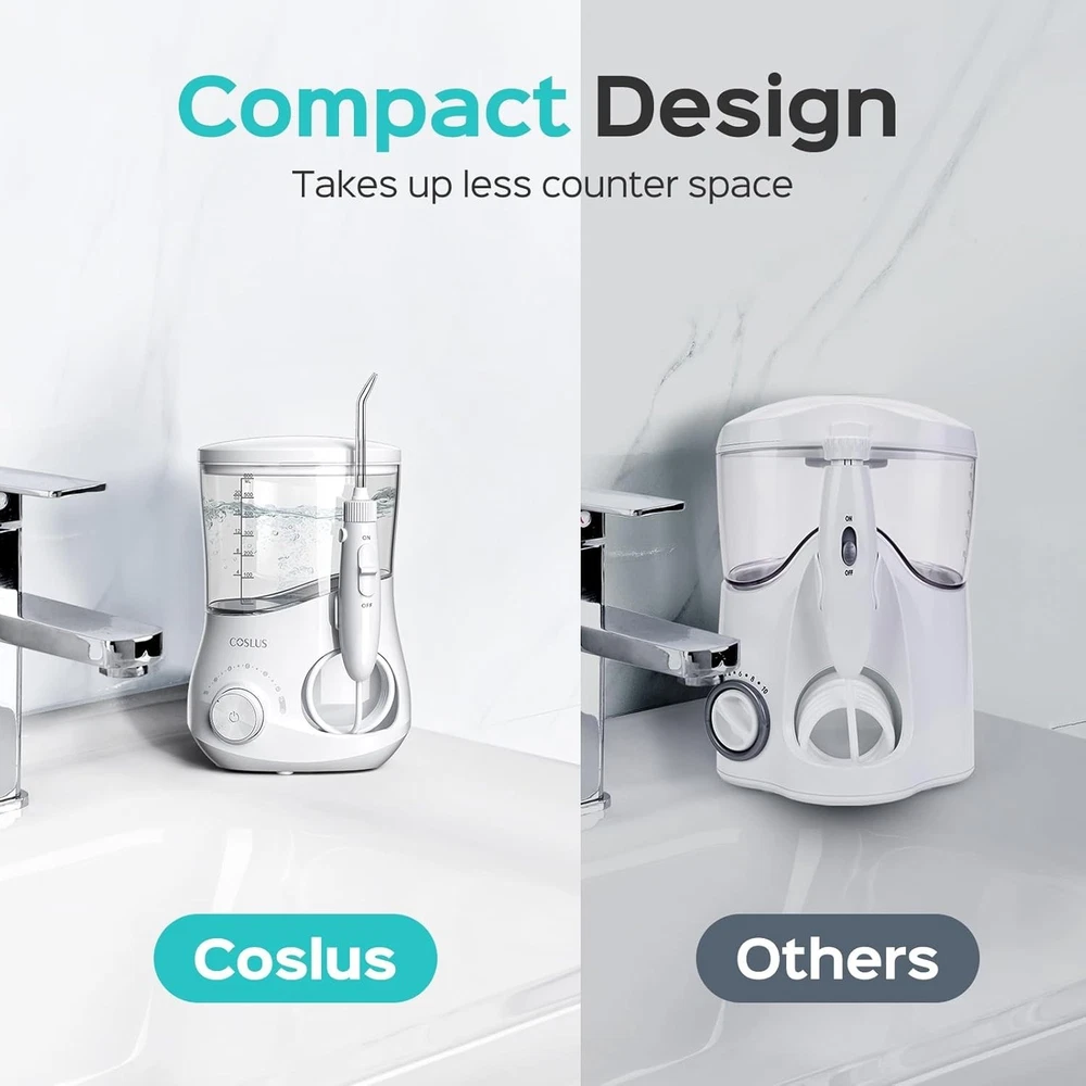 COSLUS Electric Water Flosser for Teeth: Professional Dental Pick for Orthodontic, Sensitive Gums, Braces - 12 Pressure Settings & 5 Multi-Functional Tips for Multiple Users, Home Use, White About this item Professional-Grade Oral Cleaning for Every Need: Developed by COSLUS in partnership with dental specialists, this electric water flosser delivers high-precision oral care for the whole family—whether it's teens with braces, adults maintaining dental hygiene, or seniors with sensitive gums. With 12 adjustable pressure settings (10–160 PSI), the water flosser ensures effective interdental plaque removal and food debris flushing. Ideal for daily oral care, orthodontic care, and long-term gum health maintenance, it’s a true bad breath eliminator built for everyday use. 12 Customizable Pressure Settings for Whole Family: Equipped with 12 precisely adjustable pressure levels, this COSLUS water flosser is designed to adapt to every age and need—from gentle gum care for children to deep cleaning for adults and wire cleaning for teens with braces. Its family-friendly sharing design supports multi-user households with consistent water flow for daily family oral care. Whether part of a morning routine or nighttime routine, this water flosser makes daily cleaning both safe and effective 600ML Large-Capacity Tank for Hassle-Free Routine: The COSLUS water flosser features a 600ML detachable tank that’s perfect for after-meal cleanups and daily oral care without constant refills. Supporting quick clean sessions for up to four users, it’s ideal for families with kids, parents, and grandparents. Designed for convenience in daily family oral care, this tank makes the water flosser a reliable solution for food removal, cavity prevention, and gum health—all from one compact family design 5 Multifunctional Jet Tips with Organized Storage: This water flosser includes 5 specialized jet tips tailored for different oral needs, including braces cleaning, tongue cleaning scenarios, and general oral care. With clearly organized storage and intuitive switching, it suits multi-user households, helping each family member—from children to elderly adults—address specific issues like bad breath or sensitive gums care. Whether you’re dealing with orthodontic maintenance or just need a quick clean, this setup ensures effortless family sharing Reliable Design with Practical Home Aesthetics: With a compact design and modern white finish, this COSLUS water flosser blends style and function for American homes. Its non-slip base, 3-minute auto shut-off, and easy controls support hassle-free integration into any daily routine. Whether you're prepping for the day or winding down, this water flosser supports both morning and nighttime routines with efficient gum health care. Its compact family design makes it ideal for shared spaces without sacrificing performance NOTES: Needs to be plugged in to a power source for use. Packaging may vary (new or old), but the contents are exactly the same Delivery within 3-4 days. Shipping as fast as possible Please contact if you have a question! HAVE A NICE SHOPPING