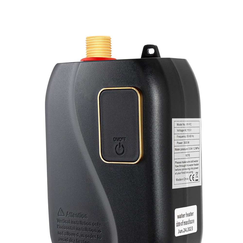 Mini Instant Electric Tankless Kitchen Hot Water Heater Shower 110v 3000w Us Description Our Water Heater Uses a Stainless Steel Heating Core with 3000w Large Power, Providing You with Instant and Constant Hot Water and Allowing for a Comfortable Washing Experience. in Addition, It Adopts Multiple Protection Designs Such As Leakage Protection, Dry-heating Protection, and Grounding Protection, Ensuring High Safety of Water Use. the Mini Body and Modern Appearance Make It a Great Companion for a Sink and Faucet. Key Features Premium Material: the Instant Water Heater Uses Stainless Steel and High-quality Abs Materials with Injection Molding, Making It Sturdy, Wear-resistant, Corrosion-resistant, and Long-lasting. A Safe Heater: the Various Protections Such As Leakage Protection Corded Electric Mini Water Heater Under Kitchen Sink Water Heater On Demand USA Mini Instant Electric Tankless Kitchen Hot Water Heater Shower 110v 3000w Us Description Our Water Heater Uses a Stainless Steel Heating Core with 3000w Large Power , Providing You with Instant and Constant Hot Water and Allowing for a Comfortable Washing Experience. in Addition, It Adopts Multiple Protection Designs Such As Leakage Protection, Dry-heating Protection, and Grounding Protection, Ensuring High Safety of Water Use. the Mini Body and Modern Appearance Make It a Great Companion for a Sink and Faucet. Key Features Premium Material: the Instant Water Heater Uses Stainless Steel and High-quality Abs Materials with Injection Molding, Making It Sturdy, Wear-resistant , Corrosion-resistant , and Long-lasting. A Safe Heater: the Various Protections Such As Leakage Protection, Dry-heating Protection, Anti-electric Wall Technology, Water-electricity Isolation, Sensor Fault Protection, and Grounding Protection and Ipx4 Waterproof Rate Make It Safe to Use Without Any Worries. Instant Heating: Using a Stainless Steel Heating Core with 3000w Large Power, This Water Heater Can Deliver Constant Hot Water, Allowing You to Experience the Warmth Without Storing Water for Preheating, Which Saves Time/Energy and Prevents Sediment/Scale Accumulation. Temperature Controllable: You Can Control the Water Temperature(20-50℃) by Adjusting the Water Flow(Large Water Flow, Low Temperature; Small Water Flow, High Temperature), Providing You with Hot Water That Fits Four Seasons in a Year. You can adjust the temperature by controlling the water flow (68-122°F). Led Display: the Digital Screen Displays the Water Temperature(℃/℉ Conversion: Press the on/off Key, and Then Press and Hold It for More than 6s to Switch ℉. Vice Versa.), Allowing You to Keep Track of the Water Temperature. Anti-scaling Design: It Can Filter the Sediment, Rust, and Other Large Particles in the Tap Water, Restore the Tap Water to the Factory State, Reduce Energy Consumption, and Avoid Damage to the Human Body and Skin. Advanced Technology: Advanced Water Flow Sensing Technology Is Adopted to Overcome the Difficulty of Using Water Heaters Due to Low Water Pressure, Making It Applicable to High-rise Residential Buildings with Low Water Pressure. Cost-effective: Only When It Is Used the Water Can Be Heated to the Required Place, Eliminating the Waste of Unused Water in the Long Water Pipeline Between the Central Water Heater and Each Faucet, Delivering Hot Water Faster and Reducing Energy Costs. Mini Appearance: This Mini Wall-mounted Black Instant Water Heater of 4.6*2.8*6.3 Inches Size Plays a Decorative Role and Does Not Occupy Much Space. Easy to Install: with the Equipped Accessories, Premade Fixing Screw Holes, English Manual, and 1/2 Inch Standard Interface, You Can Install This Heater Easily. Easy to Clean: the Smooth Surface Allows You to Wipe the Dirt Away with a Wet Cloth. Protective Package: to Prevent the Product from Being Damaged and Bumped During Transportation, We Packed It with Pearl Cotton to Protect Your Products to the Maximum Extent Possible. Details Power Cable: the 3.28ft Power Cable Allows for Easy Installation in a Wider Range. Brass Interfaces: the Water Inlet and Outlet Adopts Brass Material, Making Them Corrosion-resistant , Stable, Anti-rust , and High-temperature-resistant . Touch Button: the New-generation Touch Button with Electronic Control Has a Longer Lifespan and Good Sealing. It Resists Wet and Watery Environments and Avoids Mechanical Failure of Buttons. Application It Is Suitable for Kitchen Water, Daily Washing, Rvs, Bars, Schools, Hospitals, Communities, Hair Salons, and so on to Wash Hands, Dishes, and Face. Specifications Model: Xy-fc Color: Black Material: Stainless Steel, Abs, Brass Process: Abs Particle Injection Molding Shape: Rectangular Style: Mini, Instant Mounting Type: wall-mounted, Vertical Usage: Indoor Use Features: with Leakage Protection Water Inlet Mode: Lower Water Inlet Heating Method: Instant, Stainless Steel Heating Core Power Source: Corded Electric Plug: Us Standard Voltage:110v Frequency: 50-60hz Power: 3000w Water Pressure: 0.04-1.2mpa Anti-electric Shock Type: I Waterproof Grade: Ipx4 Wire Requirements: >2.5m² Circuit Breaker Switch: >32a Heating Time: About 5s Interface: 1/2"Npt Interface Outer Diameter: 20mm/0.78inch Heating Temperature: 20-50℃/68-122℉ Power Cord Length: 1m/3.28ft Total Height(Interfaces Included): 19.5cm/7.7inch Water Heater Size: 11.6*7*16cm/4.6*2.8*6.3inch Package Size: 11.6*7*19.5cm/4.57*2.8*7.68in Net Weight: 1kg/2.2lbs Gross Weight: 1.1kg/2.4lbs Package Included 1* Instant Water Heater 1* English Manual Other Accessories for Assembly. Notes The Unit Is Mainly for Sinks, Not for Shower Purposes. Please Verify This Unit Is the Right Size for You Before Buying. the Wire Is Required to Be More than 2.5m² and the Circuit Breaker Switch Is Greater than 32 a. You Need to Prepare a Water Pipe, Valve, and Other Excluded Accessories Yourself. It Must Be Installed Vertically Upward Instead of Horizontally, Sideways, or Flatly. Please Properly Ground the Ground Wire During Installation, and 