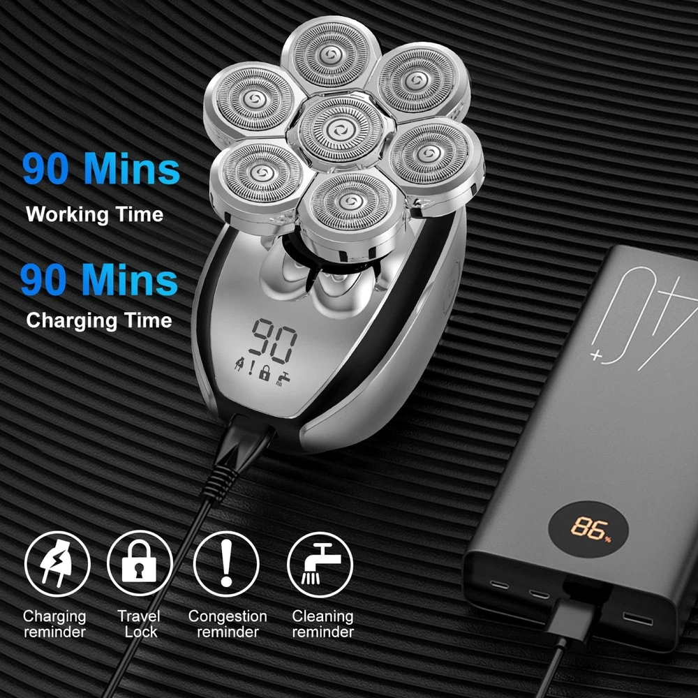 Head Shavers for Bald Men, Electric Razor for Bald Men, Waterproof Head Shavers, 3 in 1 Grooming Kit for Men, 7D Rechargeable Rotary Shaver with Led Display Product Details Color: Silver Brand: HYEHET MPN: ES059 UPC: Does not apply EAN: Does not apply Brand: HYEHET Recommended Uses For Product: head Special Feature: Dry Shave Power Source: Battery Powered Included Components: Attachment Package Dimensions ‏ : ‎ 6.5 x 5.28 x 3.39 inches; 14.07 ounces Item model number ‏ : ‎ ES059 Batteries ‏ : ‎ 1 AAA batteries required. (included) Date First Available ‏ : ‎ November 6, 2024 Manufacturer ‏ : ‎ HYEHET Country of Origin ‏ : ‎ China 7D SHAVING HEADS - PERFECT FIT AND COMFORTABLE SHAVING: Designed for men, this shaver features 7D floating heads that precisely fit the contours of the head and face for a comfortable shaving experience, sideburns and a nose hair trimmer for a complete shave MEN'S SHAVING MUST HAVE - STYLE UPDATE: Designed for the modern man, this razor is the perfect companion in your quest for an efficient shave, whether it's for daily grooming or special occasions Home & Travel - Shave Anywhere: Whether you're enjoying some private time at home or looking your best on the road, the shaver is designed to meet your shaving needs and keep you looking fresh anytime, anywhere IPX7 WATERPROOF DESIGN - WET AND DRY: With IPX7 waterproof rating, it supports wet and dry use, allowing you to enjoy shaving in the shower, easy to clean and simple to maintain 700mAh BATTERY - LONG LASTING LIFE: Built-in 700mAh battery, 2 hours fast charging can enjoy 2 hours of continuous use, LED display real-time display of the power level, to ensure that you will not be interrupted in the process of use due to power problems Intelligent display, safe guarding: LED display clearly shows the power level, hair blocking protection and water washing alert sign. Child lock function, long press 3 seconds to turn on the power, prevent accidental startup, ensure the safety of use