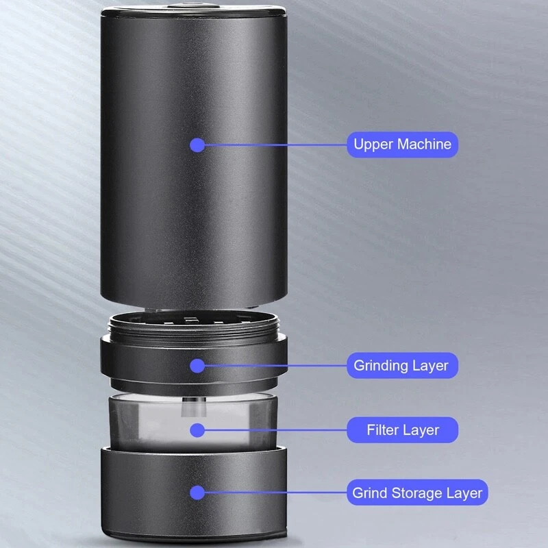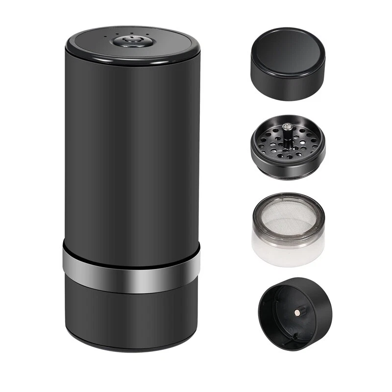roduct Description: The rechargeable herb grinder has a 4-piece design that is easy to clean and disassemble. It also has a unique storage layer design, so you can collect milled herbs and re-grind them as you want. The herbal grinder is made of high-quality aluminum alloy and a strong magnetic cover, making the device more durable. The magnetic cover can help you hold the herbs firmly and reduce spillage. It also comes with a stainless steel mesh screen which helps to collect fine powder. It is made with high-quality materials which make the chamber open smoothly and easily and the teeth will always remain sharp and easy to clean. The super-strong magnetic cover will help you effectively reduce the overflow. Even if you shake and twist it, it will not make an annoying metal sound. Its compact size and light volume can be easily put into the bag, which is very suitable for traveling.
