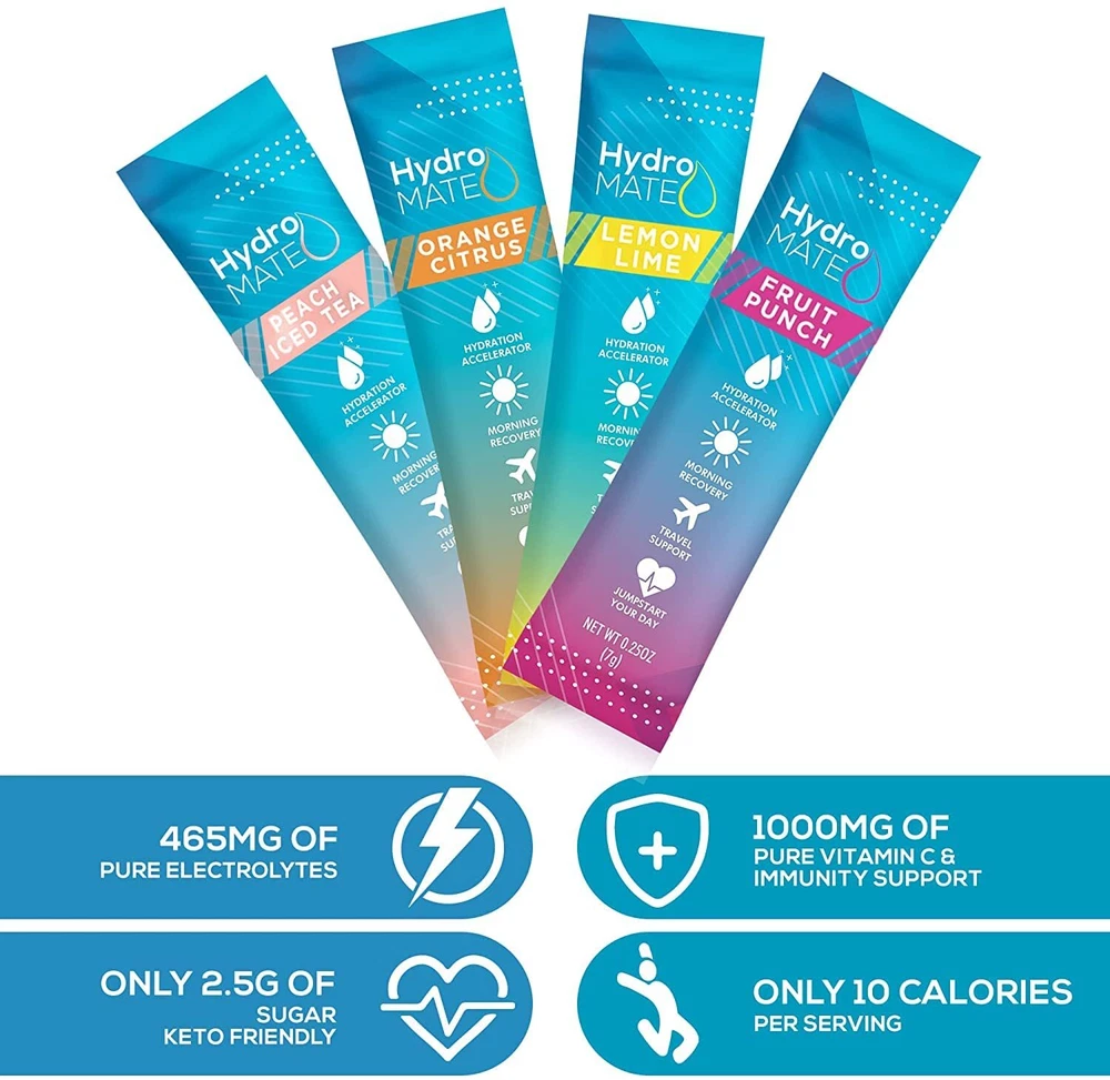 Electrolytes Powder Drink Mix Packets Hydration Accelerator Low Sugar Rapid Party Recovery Plus Vitamin C Variety Pack 30 Count Flavor Orange, Lemon Lime, Peach Iced Tea, Fruit Punch Primary Supplement Type Vitamin B12 Unit Count 30.0 Count Item Form Powder Item Weight 7 Ounces Item dimensions L x W x H 7 x 3 x 9 inches Product Benefits Hydrating Age Range (Description) All Ages Package Information Stick Pack Vacation Essentials HydroMATE Hydration Acceleration Hydration Packets are a Bachelorette Party Favors a Kit Must Haves for Beach Cruise Vacation Girls Trips Weekend Supplies HydroMate Multi Flavor Variety Pack Bag includes two Water Flavors Fruit Punch Peach Tea Lemon Lime Orange Citrus 3x Faster Hydration than Water Alone HydroMATE looking for a kit for bachelorette party bridesmaid gifts for wedding day bachelor girls weekend or an adult party favor Just 10 Calories 2.5g of sugar is a great low sugar water flavor with rehydrating electrolytes to fight dehydration with less sugar than traditional liquid sports drinks Hydro MATE Electrolyte Rehydration packets Rehydrate fast without an IV aid in dehydration relief with out needing Multiple Hours of Relief Electrolytes Powder Drink Mix Packets Hydration Accelerator Low Sugar Rapid Party Recovery Plus Vitamin C Variety Pack 30 Count Electrolytes Powder Drink Mix Packets Hydration Accelerator Low Sugar Rapid Party Recovery Plus Vitamin C Variety Pack 30 Count Electrolytes Powder Drink Mix Packets Hydration Accelerator Low Sugar Rapid Party Recovery Plus Vitamin C Variety Pack 30 Count Electrolytes Powder Drink Mix Packets Hydration Accelerator Low Sugar Rapid Party Recovery Plus Vitamin C Variety Pack 30 Count Shipping We offer FREE shipping on all orders! We ship within Three business days of payment, usually sooner. We use a selection of shipping services such as UPS, FedEx, USPS etc. We only ship to the lower 48 states, no APO/FPO addresses or PO Boxes allowed. Local pickups and combined shipping options are not provided at this time. Return You can return a product for up to 30 days from the date you purchased it. Any product you return must be in the same condition you received it and in the original packaging. Please keep the receipt. Payment We accept payment by any of the following methods: PayPal Please pay as soon as possible after winning an auction, as that will allow us to post your item to you sooner! Feedback Customer satisfaction is very important to us. If you have any problem with your order, please contact us and we will do our best to make you satisfied. Contact Us If you have any queries, please contact us via ebay. We usually respond within 24 hours on weekdays. Please visit our eBay store to check out other items for sale! Thank you for shopping at our store.