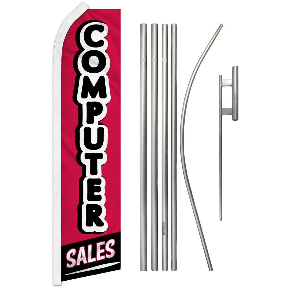 Electronics Super Swooper Feather Flutter Advertising Flag Kit --------Please make selection from Drop Down Menu---------- Included: (1) Swooper Flag, (1) 5-Piece Pole, & (1) Ground Spike Swooper Advertising Feather Flag & Pole Kit This 11.5ft x 2.5ft Super Flag is made of a 140kg super-knitted polyester built to withstand high winds over time. Its curved sleeve and free-flying edge allows the flag to grab attention without wrapping around the pole, and assembly is easy. The reinforced sleeve slides over the Swooper Pole. Our 5-Piece Aluminum Super Flag Poles are 16ft Tall & Breakdown to 5 interlocking pieces for easy construction and storage. Interior is reinforced for extra strength against high winds. Top is curved to fit advertising Super Flags. The Steel Ground Spike has a 20in stake, giving your flagpole ultimate stability. Total length is 30in: 20in below ground and 10in pole holder above ground). Shipping Details Orders are shipped within 2 Business Day, Monday - Friday, excluding major holidays. Most orders arrive at your door in 2-6 Business Days. Returns We will gladly accept your return within 30-Days of the original purchase. Return shipping costs are responsibility of the buyer. Contact Us Messages are answered Monday through Friday within 24 hours of receipt. Messages sent on Weekends or Holidays will be answered the following business day.