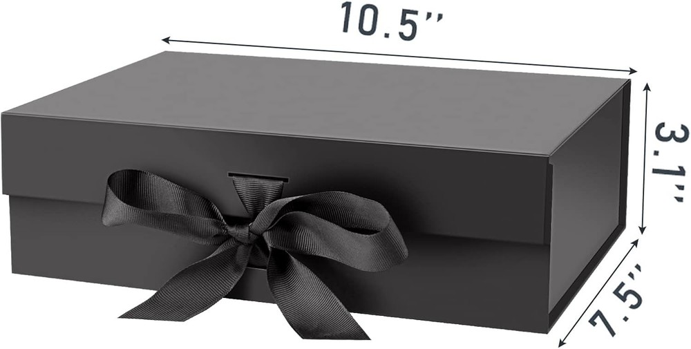【Size】The gift box outside measure: 10.5x7.5x3.1 inch( L x W x H) , inside dimensions: 10x7x3 inch( L x W x H) .Please check the size whether it meet your needs.【Patent Number D950373S】 【Design】The gift box with lids,Ribbon and magnetic closure.It is easy to assemble,the Ribbon is easy to tie a bow. 【Material】The Eco friendly gift box is made from high-quality hard cardboard. 【Occasion】The gift box can wrap, contain, protect and present a special gift for Birthday,Mother's Day,Father's Day,Christmas,Wedding, Valentines day,Holidays, Graduations, Housewarmings and so on.