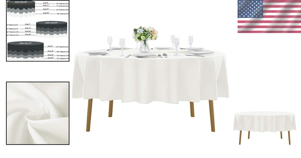 Perfect for elegant events! These tablecloths drape beautifully and stay crisp after washing—no stains or wrinkles. The polyester fabric feels high-end and the ivory color adds a classy touch. Ideal for weddings, banquets, or upscale dinners. The 12-pack is a great value, and the 108-inch size fits most round tables flawlessly. Love how easy they are to clean while still looking pristine every time. Highly recommend for hassle-free hosting!