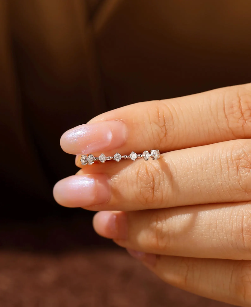 $ 20.9114K Lab-Grown Diamond Thin Half Eternity Wedding Band for Women