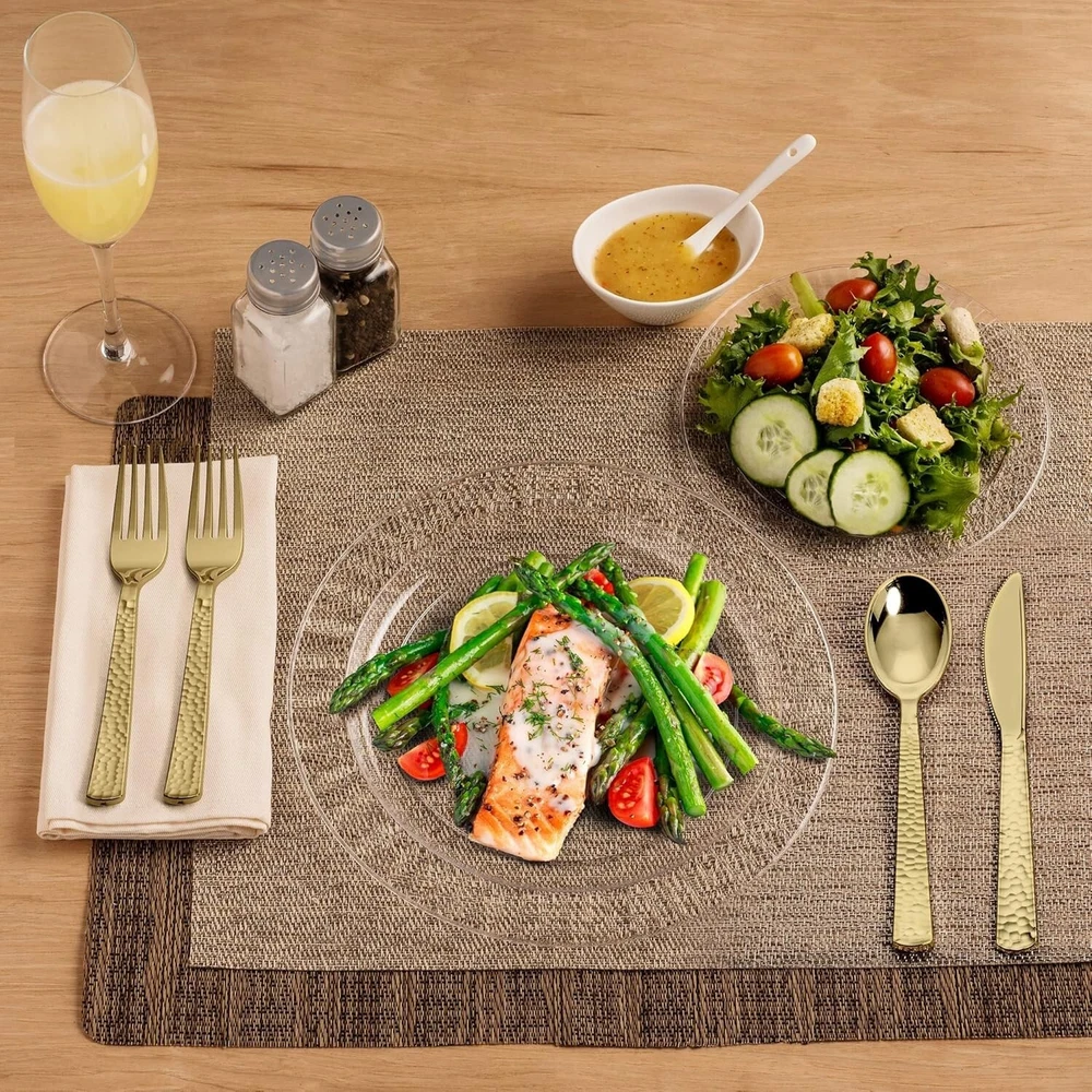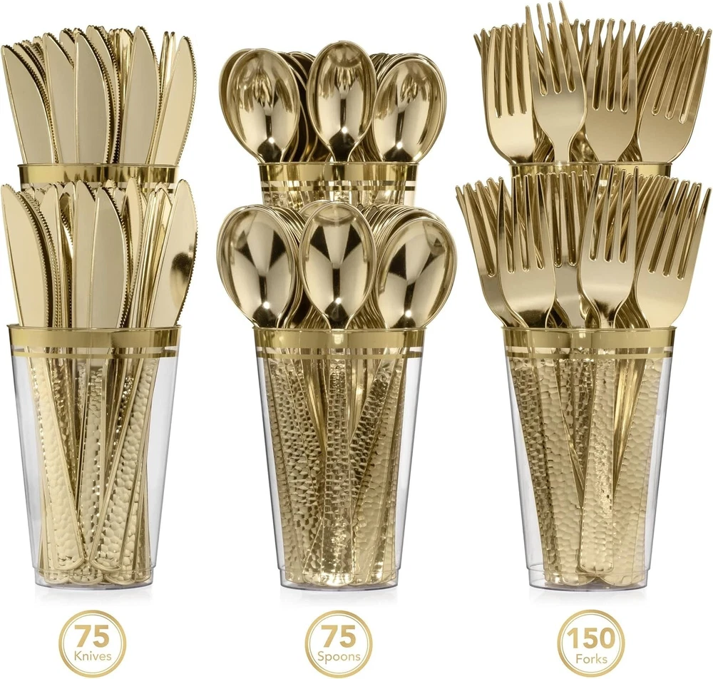 Sophisticated 300-Piece Gold Plastic Flatware - Perfect for Special Occasions ‹ › ‹ › ‹ › ‹ › ‹ › ‹ › ‹ › ‹ › ‹ › ‹ › ‹ › Sophisticated 300-Piece Gold Plastic Flatware Perfect for Special Occasions Chic Plastic Gold Flatware Add a real sense of charm with a 300-piece gold plastic cutlery set. Heavy-duty plastic utensils that elevate any celebration. Brings an extra special touch to your table settings. Sleek & Stylish Design The look of real gold flatware without the hefty price tag. Hammered finish that enhances elegance and style. A timeless design that won't go out of fashion. For Special Occasions Elegant cutlery suitable for weddings, anniversaries, parties, and family gatherings. Perfect for all holidays or even just a cozy dinner at home. Hassle-Free Cleanup Eliminate the worry of tarnished metal flatware. Enjoy fine metallic aesthetics without the cleanup hassles. Toss them away after your event, saving valuable time. Durable & Safe Constructed from high-quality BPA-free plastic, ensuring safety and durability. Recyclable, merging convenience with eco-friendliness. Sturdy design resistant to breakage, bending, or snapping; knives effortlessly cut through steak. Why Choose Our Gold Plastic Flatware? Elevate your dining experience with our sophisticated 300-Piece Gold Plastic Flatware. Whether it’s a lavish wedding or an intimate gathering at home, this chic and elegant cutlery set will transform your table into a stunning display. Enjoy peace of mind knowing that you can have the luxurious look of gold flatware without the worry of cleanup. With superior strength and stylish design, it’s the perfect choice for those who cherish beauty and convenience. Indulge in elegance and make every meal a special occasion—order your 300-Piece Gold Plastic Flatware set today! Shipping Free & Fast Shipping - We offer free shipping to most of the USA with a normal delivery time of 3-7 days. However, due to the current situation, additional delivery time (up to 3 weeks) may be required for some items. Alternative Carriers - We may use alternative carriers (e.g. USPS, FedEx, UPS, etc.) to ensure your package arrives safely and on time. Due to the use of multiple carriers, we are unable to provide a tracking number automatically. Handling Time - Orders are processed and shipped within 1-2 business days of receiving cleared payment. Shipping Restrictions - Shipping to Alaska, Hawaii, Puerto Rico, Guam, and other US territories may incur shipping charges or delivery restrictions. Please contact us before ordering, or your order can be refunded/cancelled. State Restrictions - There may be restrictions based on your state of purchase. For example, certain items may not be shipped to California due to state regulations. Contact for Tracking Updates - If you require tracking updates or have any concerns about the delivery of your order, please feel free to contact us, and we will be happy to assist you. Return 30-Day Hassle-Free Returns - We want you to be completely satisfied with your purchase. If you are not, you can return the item within 30 days of receiving it for a full refund or exchange. Easy Return Process - To start a return, simply contact us and we will provide you with a prepaid return shipping label and detailed instructions. Restocking Fee - There are no restocking fees for returns. However, the buyer is responsible for return shipping costs if the return is not due to a seller's error. Refund Processing Time - Refunds will be processed within 5 business days of receiving the returned item in its original condition. Payment We accept all major credit cards, PayPal, and Apple Pay for your convenience. Your payment information is secure and encrypted to ensure a safe and seamless transaction. Please complete your payment within 3 days of purchase to avoid any delays in shipping. Feedback Your feedback is extremely important to us. We strive to provide the best products and customer service possible. If you are satisfied with your purchase, please take a moment to leave us a positive review. If you have any concerns or issues with your order, please contact us before leaving negative feedback. We are committed to resolving any problems and ensuring your satisfaction. Contact Us If you have any questions or concerns, please feel free to reach out to our customer support team. You can contact us through the eBay messaging system. We are available Monday to Friday, 9:00 am to 5:00 pm EST, and we will do our best to respond to your inquiry within 24 hours. Buy it now and enjoy a pleasant shopping experience! UPC: Not Set Unit Quantity: 300 Material: Plastic Character: Not Set Features: Decorative,Disposable,Heavy Duty,Non-Slip Grip Brand: Unbranded Type: Cutlery Occasion: All Occasions Number of Items: 300 Theme: Not Set Color: Gold Character Family: Not Set Production Technique: Not Set MPN: Not Set Pattern: Not Set Department: Adults Country/Region of Manufacture: Not Set Product Line: Not Set Style: Modern Origin: Not Set Production Style: Not Set Unit Type: lb Vintage: Not Set Antique: Not Set Personalize: Not Set