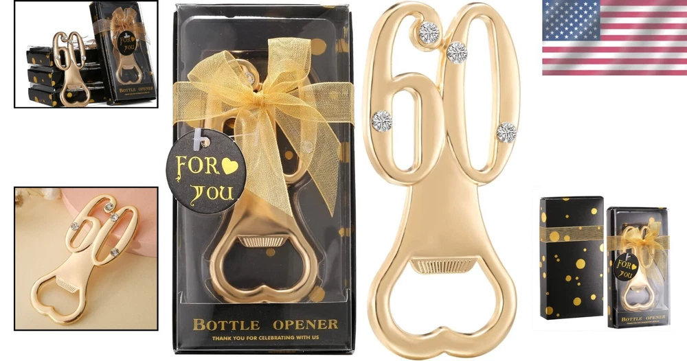 Elegant 36 Pack Gold Bottle Openers for 60th Birthday & Anniversary Gifts ‹ › ‹ › ‹ › ‹ › ‹ › ‹ › ‹ › ‹ › ‹ › ‹ › Elegant 36 Pack Gold Bottle Openers Perfect for 60th Birthday & Anniversary Gifts Cheers to 60th Party! Designed specifically for 60th birthday parties and wedding anniversaries. A useful tool that transforms into a creative and heartfelt gift for your guests. Perfectly embodies gratitude and love, a token of appreciation for sharing your special moment. Premium Quality Bottle Openers Crafted from high-finish metal alloy ensuring durability and elegance. Features stunning electroplated golden 60 patterns adorned with sparkling rhinestones. Its beautiful design will captivate your guests, leaving a lasting impression. Functions Each bottle opener combines utility with elegance, making it a gorgeous addition to your event. Presents well in individual packages in luxurious black and gold – perfect for any classy celebration. Ideal as a gift, decoration, or keepsake for memorable events like birthdays and anniversaries. Specifications Size: 3.2 x 1.6 inches Weight: 40g / 1.6oz Gift Box Size: 5.1 x 2.4 x 1.2 inches Color: Gold and Black Package Includes: Set of 36 exquisite beer bottle openers with elegant packaging. Why Choose Our Party Favor Bottle Opener? Unique Design: Stylish look with a playful twist – a perfect blend of function and flair. Premium Quality: Hand-wrapped, perfect for direct gifting; each piece is a statement of quality. Durable Alloy Construction: Rust-resistant and perfect for daily use; an ultimate gift for beer lovers. Gift your guests something unforgettable that complements your elegant celebration. Choose our Gold Bottle Openers and ensure that your 60th birthday or anniversary is remembered long after the event. Celebrate in style, and express your love with a touch of sophistication! Shipping Free & Fast Shipping - We offer free shipping to most of the USA with a normal delivery time of 3-7 days. However, due to the current situation, additional delivery time (up to 3 weeks) may be required for some items. Alternative Carriers - We may use alternative carriers (e.g. USPS, FedEx, UPS, etc.) to ensure your package arrives safely and on time. Due to the use of multiple carriers, we are unable to provide a tracking number automatically. Handling Time - Orders are processed and shipped within 1-2 business days of receiving cleared payment. Shipping Restrictions - Shipping to Alaska, Hawaii, Puerto Rico, Guam, and other US territories may incur shipping charges or delivery restrictions. Please contact us before ordering, or your order can be refunded/cancelled. State Restrictions - There may be restrictions based on your state of purchase. For example, certain items may not be shipped to California due to state regulations. Contact for Tracking Updates - If you require tracking updates or have any concerns about the delivery of your order, please feel free to contact us, and we will be happy to assist you. Return 30-Day Hassle-Free Returns - We want you to be completely satisfied with your purchase. If you are not, you can return the item within 30 days of receiving it for a full refund or exchange. Easy Return Process - To start a return, simply contact us and we will provide you with a prepaid return shipping label and detailed instructions. Restocking Fee - There are no restocking fees for returns. However, the buyer is responsible for return shipping costs if the return is not due to a seller's error. Refund Processing Time - Refunds will be processed within 5 business days of receiving the returned item in its original condition. Payment We accept all major credit cards, PayPal, and Apple Pay for your convenience. Your payment information is secure and encrypted to ensure a safe and seamless transaction. Please complete your payment within 3 days of purchase to avoid any delays in shipping. Feedback Your feedback is extremely important to us. We strive to provide the best products and customer service possible. If you are satisfied with your purchase, please take a moment to leave us a positive review. If you have any concerns or issues with your order, please contact us before leaving negative feedback. We are committed to resolving any problems and ensuring your satisfaction. Contact Us If you have any questions or concerns, please feel free to reach out to our customer support team. You can contact us through the eBay messaging system. We are available Monday to Friday, 9:00 am to 5:00 pm EST, and we will do our best to respond to your inquiry within 24 hours. Buy it now and enjoy a pleasant shopping experience! UPC: Not Set Unit Quantity: 36 Material: Metal,Metal Alloy Character: Not Set Features: Decorative,Gold Plated,With Rhinestones,Individual Gift Packaging Brand: Unbranded Type: Favors Occasion: 60th Birthday Department: Adults Theme: Not Set Character Family: Not Set Color: Gold MPN: Not Set Production Technique: Not Set Country/Region of Manufacture: Not Set Product Line: Not Set Origin: Not Specified Style: Contemporary Age Level: Over 18 Years Time Period Manufactured: Not Set Production Style: Not Set Unit Type: Unit Vintage: Not Set Antique: Not Set Personalize: Not Set