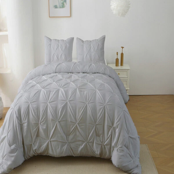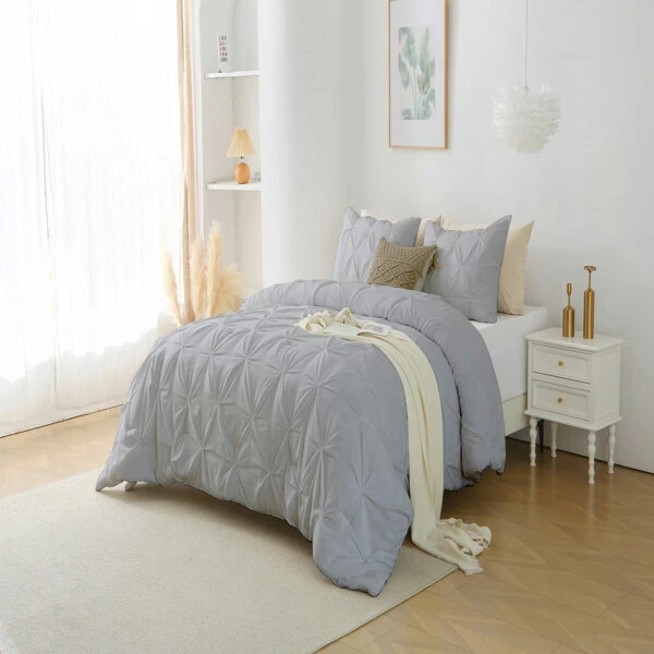 1. This comforter set is a dream—soft, breathable, and stylish! The lightweight down-alternative filling keeps me cozy without overheating, and the elegant pintuck design elevates my bedroom. Easy to care for and perfect for any season, it feels luxurious every night. A total upgrade for both comfort and decor!