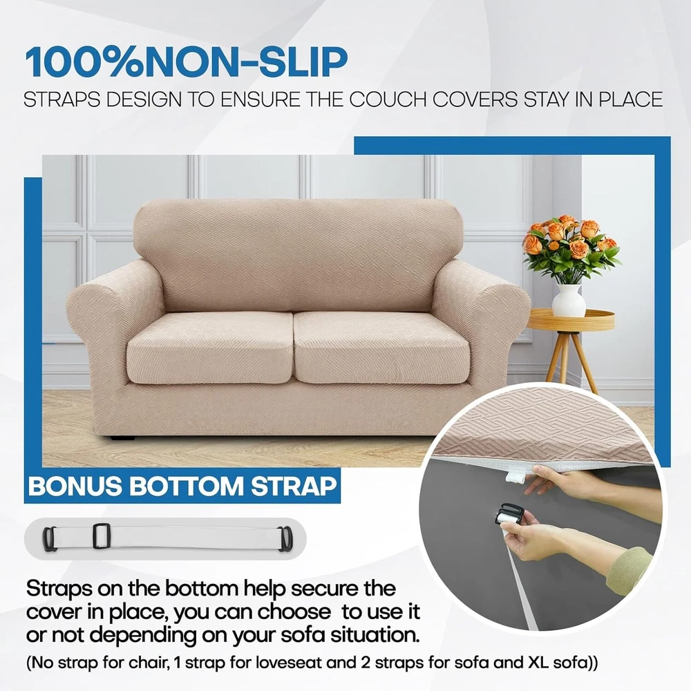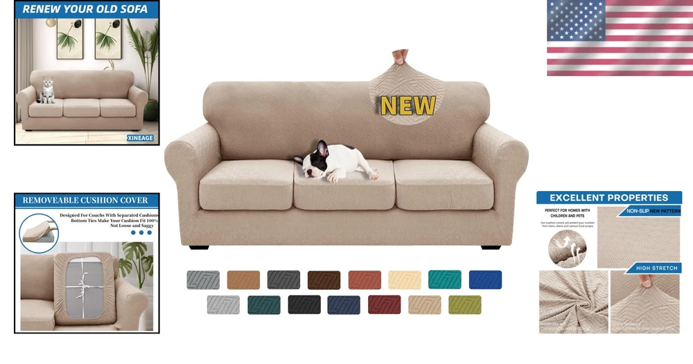 Elegant 4-Piece Jacquard Sofa Protector Covers for Pets - Fits 71"-91" Couches ‹ › ‹ › ‹ › ‹ › ‹ › ‹ › ‹ › ‹ › ‹ › ‹ › Elegant 4-Piece Jacquard Sofa Protector Covers for Pets Transform your living space while providing the ultimate protection for your cherished furniture with our elegant 4-Piece Jacquard Sofa Protector Covers. Designed for couches measuring 71"-91", this exquisite set blends style and functionality, elevating your home decor and shielding your sofa from everyday wear and tear. Features: 4 Pieces Included: This premium stretch cover is tailored for couches with individual cushions, featuring one couch cover and three cushion covers for a flawless fit. High Stretchy Material: Crafted from 85% polyester and 15% spandex, the fabric is soft, breathable, and designed for both flexibility and durability. Unique Jacquard Design: The sophisticated jacquard knitted fabric features geometric patterns, adding an upscale touch to your living room decor. Full Coverage Design: Our sofa protector envelopes the entire couch, offering comprehensive protection against stains, dust, and pet hair. Machine Washable: Simplify your cleaning routine; simply wash the removable cushion covers rather than the entire set. Do not bleach, tumble dry low. Easy Installation: Follow our detailed installation guide and effortlessly secure your protective cover in place. Benefits: Protects against stains, dust, sunlight, and pet-related wear. Stylish addition to your home decor with intricate jacquard patterns. Perfect fit for various couch styles, ensuring a polished appearance. High-quality fabric is gentle on skin, making it family-friendly. The elastic edge and extra straps ensure a non-slip fit, providing peace of mind during use. Why Choose Our Elegant Sofa Protector Covers? Searching for a seamless blend of sophistication and practicality? Our Elegant 4-Piece Jacquard Sofa Protector Covers is your answer! With its luxurious fabric, superior fit, and comprehensive coverage, this cover takes the stress out of maintaining your furniture while enhancing your living space. Ideal for families with pets and children, it offers an elegant solution to everyday wear. Elevate your home’s aesthetic while safeguarding your treasured sofa - order your Elegant 4-Piece Jacquard Sofa Protector Covers today! Shipping Free & Fast Shipping - We offer free shipping to most of the USA with a normal delivery time of 3-7 days. However, due to the current situation, additional delivery time (up to 3 weeks) may be required for some items. Alternative Carriers - We may use alternative carriers (e.g. USPS, FedEx, UPS, etc.) to ensure your package arrives safely and on time. Due to the use of multiple carriers, we are unable to provide a tracking number automatically. Handling Time - Orders are processed and shipped within 1-2 business days of receiving cleared payment. Shipping Restrictions - Shipping to Alaska, Hawaii, Puerto Rico, Guam, and other US territories may incur shipping charges or delivery restrictions. Please contact us before ordering, or your order can be refunded/cancelled. State Restrictions - There may be restrictions based on your state of purchase. For example, certain items may not be shipped to California due to state regulations. Contact for Tracking Updates - If you require tracking updates or have any concerns about the delivery of your order, please feel free to contact us, and we will be happy to assist you. Return 30-Day Hassle-Free Returns - We want you to be completely satisfied with your purchase. If you are not, you can return the item within 30 days of receiving it for a full refund or exchange. Easy Return Process - To start a return, simply contact us and we will provide you with a prepaid return shipping label and detailed instructions. Restocking Fee - There are no restocking fees for returns. However, the buyer is responsible for return shipping costs if the return is not due to a seller's error. Refund Processing Time - Refunds will be processed within 5 business days of receiving the returned item in its original condition. Payment We accept all major credit cards, PayPal, and Apple Pay for your convenience. Your payment information is secure and encrypted to ensure a safe and seamless transaction. Please complete your payment within 3 days of purchase to avoid any delays in shipping. Feedback Your feedback is extremely important to us. We strive to provide the best products and customer service possible. If you are satisfied with your purchase, please take a moment to leave us a positive review. If you have any concerns or issues with your order, please contact us before leaving negative feedback. We are committed to resolving any problems and ensuring your satisfaction. Contact Us If you have any questions or concerns, please feel free to reach out to our customer support team. You can contact us through the eBay messaging system. We are available Monday to Friday, 9:00 am to 5:00 pm EST, and we will do our best to respond to your inquiry within 24 hours. Buy it now and enjoy a pleasant shopping experience! UPC: Not Set Unit Quantity: 4 Suitable For: 3-Seater Sofa,Chair,Loveseat,Sofa Material: Polyester,Spandex Compatible Brand: Not Set Compatible Model: Universal Room: Home Office/Study,Living Room Features: Stretch,Anti Slip,Durable,Elastic Theme: Not Set Care Instructions: Do Not Bleach,Machine Wash,Tumble dry low Brand: Unbranded Color: Khaki Product Line: Not Set Item Height: Not Set Item Width: Not Set Item Length: Not Set Item Weight: n/a Model: Not Set MPN: Not Set Type: Sofa Cover Style: Modern Pattern: Solid Upholstery Fabric: Polyester/Polyester Blend Country/Region of Manufacture: Not Set Era: 21st Century (2000-Now) Manufacturer Warranty: Not Set Unit Type: Unit Personalized: Not Set Original/Reproduction: Not Set