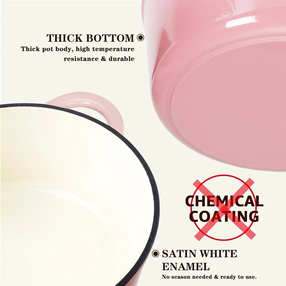 Elegant 5.5QT Enameled Cast Iron Dutch Oven in Pink - Perfect for All Cooking Needs ‹ › ‹ › ‹ › ‹ › ‹ › ‹ › ‹ › ‹ › ‹ › ‹ › Elegant 5.5QT Enameled Cast Iron Dutch Oven in Pink - Perfect for All Cooking Needs Outstanding Heat Mastery Crafted with precision, our enamel cast iron ensures exceptional heat distribution and retention. Solid integral molding guarantees unmatched durability, ensuring seamless cooking experiences. Perfectly Preserved Flavors Innovative design that evenly condenses water vapor on the lid, preserving ideal humidity and flavors. Say goodbye to dry and overcooked meals. Versatile Culinary Wonder From stewing and boiling to roasting and frying, this Dutch oven does it all! Discover endless culinary possibilities and simplify your kitchen. Universal Compatibility Shines on various stovetops including gas, electric, ceramic, and induction. Oven safe up to 500℉ for an exceptional range of cooking options. Effortless Cleaning & Safety First Flat and smooth enamel surface makes cleaning a breeze; easily remove food residues with a gentle wipe. Includes a cotton heat-resistant cap for a comfortable grip and protection from burns when handling. Why Choose Our Enameled Cast Iron Dutch Oven? Elevate your culinary skills with our Elegant 5.5QT Enameled Cast Iron Dutch Oven in Pink. This beautifully designed cookware not only enhances your kitchen aesthetics but also ensures optimum performance. With its exceptional heat mastery and flavor-preserving lid, your meals will be perfectly cooked every time. Don't miss the opportunity to create memorable dining experiences. Order your Dutch oven today and embark on a culinary journey like never before! Shipping Free & Fast Shipping - We offer free shipping to most of the USA with a normal delivery time of 3-7 days. However, due to the current situation, additional delivery time (up to 3 weeks) may be required for some items. Alternative Carriers - We may use alternative carriers (e.g. USPS, FedEx, UPS, etc.) to ensure your package arrives safely and on time. Due to the use of multiple carriers, we are unable to provide a tracking number automatically. Handling Time - Orders are processed and shipped within 1-2 business days of receiving cleared payment. Shipping Restrictions - Shipping to Alaska, Hawaii, Puerto Rico, Guam, and other US territories may incur shipping charges or delivery restrictions. Please contact us before ordering, or your order can be refunded/cancelled. State Restrictions - There may be restrictions based on your state of purchase. For example, certain items may not be shipped to California due to state regulations. Contact for Tracking Updates - If you require tracking updates or have any concerns about the delivery of your order, please feel free to contact us, and we will be happy to assist you. Return 30-Day Hassle-Free Returns - We want you to be completely satisfied with your purchase. If you are not, you can return the item within 30 days of receiving it for a full refund or exchange. Easy Return Process - To start a return, simply contact us and we will provide you with a prepaid return shipping label and detailed instructions. Restocking Fee - There are no restocking fees for returns. However, the buyer is responsible for return shipping costs if the return is not due to a seller's error. Refund Processing Time - Refunds will be processed within 5 business days of receiving the returned item in its condition. Payment We accept all major credit cards, PayPal, and Apple Pay for your convenience. Your payment information is secure and encrypted to ensure a safe and seamless transaction. Please complete your payment within 3 days of purchase to avoid any delays in shipping. Feedback Your feedback is extremely important to us. We strive to provide the best products and customer service possible. If you are satisfied with your purchase, please take a moment to leave us a positive review. If you have any concerns or issues with your order, please contact us before leaving negative feedback. We are committed to resolving any problems and ensuring your satisfaction. Contact Us If you have any questions or concerns, please feel free to out to our customer support team. You can contact us through the eBay messaging system. We are available Monday to Friday, 9:00 am to 5:00 pm EST, and we will do our best to respond to your inquiry within 24 hours. Buy it now and enjoy a pleasant shopping experience! Item Diameter: 13 inches Capacity: 5.5 liters Item Weight: 5.5 kilograms Heat Resistance: 500°F Item Depth: Not specified Item Height: 33 Centimeters Unit Quantity: 1 Stove Type Compatibility: Electric,Gas,Induction,Ceramic Set Includes: Lid,Cookbook,Cotton Potholders Material: Cast Iron,Enameled Features: Easy to Clean,Non-Stick,Oven-Safe,With Lid Type of Oven: Electric,Gas,Induction,Oven Type: Dutch Oven Color: Pink Surface Coating: Enameled Shape: Round Number of Items in Set: Three-Piece