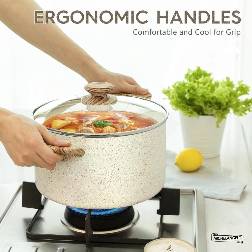 $ 15.31Ammeloo 8-Piece Non Stick Stock Pot with Lid, Ceramic Cooking Pot Set, 4.5 Qt Al