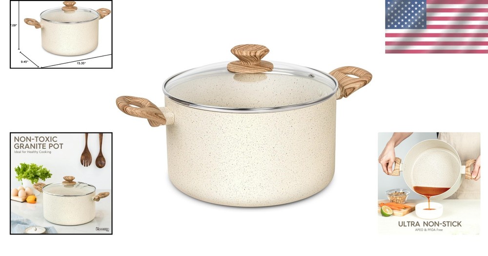 Elegant 6 Qt Granite Stock Pot with Cool Handles - Perfect for Family Cooking ‹ › ‹ › ‹ › ‹ › ‹ › ‹ › ‹ › ‹ › ‹ › ‹ › Elegant 6 Qt Granite Stock Pot - Perfect for Family Cooking Key Features: Healthy Non-Toxic Pot: Completely free of PFOA/PFOS, ensuring zero toxins leach into your meals. Effortless Nonstick Cleaning: Special granite surface prevents food from sticking, allowing for a quick clean up. Fast Heating: Aluminum core heats 30% faster, providing even cooking on all stovetops. Comfortable Ergonomic Handles: Bakelite handles remain cool to the touch, ensuring a secure grip for spill-free cooking. Quality: Chefs-grade nonstick construction guarantees durability and a reinforced base to prevent warping. Benefits: Cook wholesome family meals with the utmost confidence, free from harmful chemicals. Spend more quality time with your loved ones while enjoying a hassle-free cleaning experience. Experience consistent results with fast and even heating, perfect for soups, stews, and seafood dishes. Enjoy the comfort of cool-touch handles, creating a safer kitchen environment for you and your family. Invest in a lifetime solution for all your culinary needs, combining elegance with practicality. Elevate Your Cooking Experience Transform your cooking routine with our Elegant 6 Qt Granite Stock Pot, designed not only for functionality but also to add an elegant touch to your kitchen. Its safe, non-toxic materials ensure that your delicious soups, stews, and broths are as healthy as they are flavorful. Enjoy effortless cleaning and quick heating, allowing you more time to savor special moments with your family. Make the wise choice for your kitchen today—a beautiful blend of safety, convenience, and quality awaits you! Shipping Free & Fast Shipping - We offer free shipping to most of the USA with a normal delivery time of 3-7 days. However, due to the current situation, additional delivery time (up to 3 weeks) may be required for some items. Alternative Carriers - We may use alternative carriers (e.g. USPS, FedEx, UPS, etc.) to ensure your package arrives safely and on time. Due to the use of multiple carriers, we are unable to provide a tracking number automatically. Handling Time - Orders are processed and shipped within 1-2 business days of receiving cleared payment. Shipping Restrictions - Shipping to Alaska, Hawaii, Puerto Rico, Guam, and other US territories may incur shipping charges or delivery restrictions. Please contact us before ordering, or your order can be refunded/cancelled. State Restrictions - There may be restrictions based on your state of purchase. For example, certain items may not be shipped to California due to state regulations. Contact for Tracking Updates - If you require tracking updates or have any concerns about the delivery of your order, please feel free to contact us, and we will be happy to assist you. Return 30-Day Hassle-Free Returns - We want you to be completely satisfied with your purchase. If you are not, you can return the item within 30 days of receiving it for a full refund or exchange. Easy Return Process - To start a return, simply contact us and we will provide you with a prepaid return shipping label and detailed instructions. Restocking Fee - There are no restocking fees for returns. However, the buyer is responsible for return shipping costs if the return is not due to a seller's error. Refund Processing Time - Refunds will be processed within 5 business days of receiving the returned item in its condition. Payment We accept all major credit cards, PayPal, and Apple Pay for your convenience. Your payment information is secure and encrypted to ensure a safe and seamless transaction. Please complete your payment within 3 days of purchase to avoid any delays in shipping. Feedback Your feedback is extremely important to us. We strive to provide the best products and customer service possible. If you are satisfied with your purchase, please take a moment to leave us a positive review. If you have any concerns or issues with your order, please contact us before leaving negative feedback. We are committed to resolving any problems and ensuring your satisfaction. Contact Us If you have any questions or concerns, please feel free to out to our customer support team. You can contact us through the eBay messaging system. We are available Monday to Friday, 9:00 am to 5:00 pm EST, and we will do our best to respond to your inquiry within 24 hours. Buy it now and enjoy a pleasant shopping experience! Unit Quantity: 6 qt Stove Type Compatibility: Electric,Gas,Induction Material: Aluminum Set Includes: Lid Features: Easy to Clean,Non-Stick,With Lid Surface Coating: Granite Capacity: 6 qt Type: Stockpot Color: White Item Diameter: 9.45 in Shape: Round Item Height: 7.09 Inches Item Depth: 7.09 in Number of Items in Set: One-Piece Item Weight: 4 lb