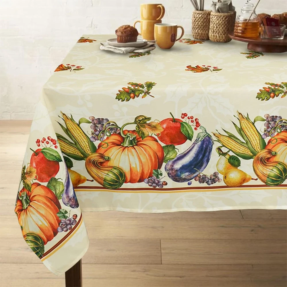 Elegant 60x120 Inch Fall Thanksgiving Tablecloth for Rectangle Tables Waterproof