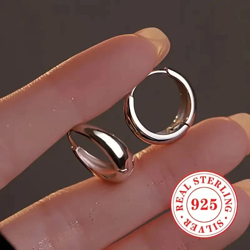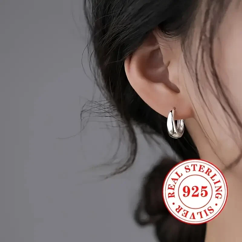 Elegant 925 Sterling Silvery Hoop Earrings - Hypoallergenic, Fashionable Jewelry for Women, Perfect for Casual Attire & Special Occasions.