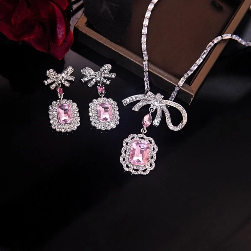 Features: Stand out with this Crystal Bowknot Necklace/Earrings that adds a touch of to any look. The square shaped crystal pendant gives this necklace/earring a unique and appeal. Designed for women who appreciate beauty, this necklace/earring is suitable for various occasions. Whether it's a casual gathering or a formal event, this necklace/earring complements any attire. the beauty of this Crystal Bowknot Necklace/Earring and make it a valuable addition to your jewelry collection. Specifications: Alloy Type:Necklace/Earring (Optional) Necklace Length:Approx.37+8.8cm/14.6+3.5inches Package Includes: 1Piece Crystal Bowknot Necklace/1Pair Crystal Bowknot Earrings note: Please allow 1-2cm error due to manual measurement. Please make sure you do not mind before you bid. Due to the difference between different monitors, the picture may not reflect the actual color of the item. Thanks!