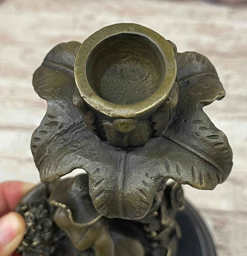 Elegant Maiden Woman Bronze Sculpture Candle Holder Art Deco Style Artwork Decor Elegant Maiden Woman Bronze Sculpture Candle Holder Art Deco Style Artwork Decor Condition : This sculpture is in perfect condition. Bronze Dimensions with Marble Base: Height 12" X Width 5" Marble Dimensions: Diameter 5" Height without base:11" Weight 8 LBS Inventory:84YCN0584648 Experience the captivating beauty of this Hand-Crafted Maiden Holding Flower Basket Candle Holder Bronze Sculpture, brought to life through the intricate artistry of the Lost Wax Method. Created by the skilled hands of artist Evan Stone, this stunning piece exudes elegance and charm. The maiden stands gracefully, her delicate features and flowing dress meticulously sculpted to perfection. Adding to the allure of this masterpiece is the inclusion of a candle holder, combining art and function. This dual-purpose sculpture not only captures the essence of the maiden's beauty but also provides an elegant way to illuminate your space. The dark bronze patina enriches the sculpture's details, adding depth and dimension to every curve and contour. Resting upon a sleek black marble base, this sculpture is a testament to the artist's talent and dedication. Each detail, from the flower basket to the intricate candle holder, reflects the commitment to craftsmanship. Signed by the artist Evan Stone, this bronze sculpture is a timeless addition to any collection, adding sophistication and artistry to your home or office. Hand Made Maiden Holden a Flower Basket Candle Holder Bronze Sculpture Video will open in a new window Using the eBay App? Paste link into a browser window: [isdntekvideo] Shipping Terms : Most of our items are shipped via USPS (United States Postal Service) mail or UPS. Most orders are shipped within 24-48 hours of purchase. Please be aware that not all items are available for USPS shipping due to size and weight. We do ship to Hawaii, Alaska, Canada, Puerto Rico, APO/AE, and U.S. Virgin Islands, however, an additional charge may be required. Please contact us before making any purchases in these areas. For Non-USA customers, you may be responsible for all duty, tax, brokerage fees that may be due upon delivery (shipping costs cover freight charges only). We also ship internationally. Please refer to the "Shipping and Handling" chart for the rates for each area. Payment : We accept just about any form of payment. PayPal, Master Card, Visa or American Express credit cards. Money orders, cashiers checks, and even personal or business checks. For governmental institutions, we will also accept a purchase order. Please understand that for personal or business checks we have to wait for the check to clear (usually 7 days) before shipping. Condition : New Detailed Hand Crafted Hot Cast Bronze Satisfaction Guaranteed. This is Stock Photo, Slight Color Variation!! Listing and template services provided by inkFrog