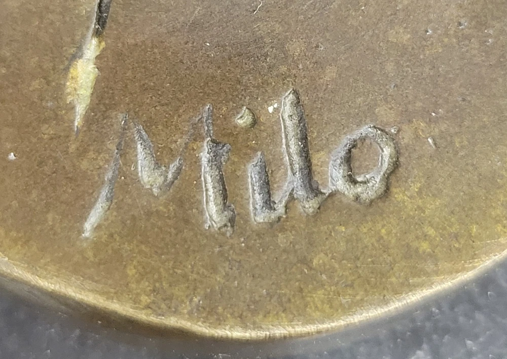 Condition : This sculpture is in perfect condition.nbsp; nbsp; Bronze Dimensions with Marble Base: Height 10"nbsp; nbsp;X Width 7"nbsp;nbsp; Marble Dimensions: Diameter 4.5"nbsp;nbsp; Height without base:9"nbsp; nbsp; Weight:4LBSnbsp; Inventory: 47YRD12222874 Daydreamers, especially those enchanted by mystical realms, will be captivated by this whimsical sculpture of a daydreaming fairy. In her wanderings through the enchanted forest, her eyes sparkle with wonder as she absorbs the magical essence that surrounds her. Her youthful innocence is evident in her joyful giggles, echoing the soft melodies of life and fantasy intertwining in her world. With delicate wings arching gracefully behind her and dressed in a captivating red patina gown, this fairy embodies the essence of imagination and innocence. Crafted with meticulous attention to detail, this enchanting sculpture is a testament to the artistry of the "Lost Wax Method." Made entirely of bronze and lovingly handmade, it stands as a testament to the beauty that can be achieved through skilled craftsmanship. Mounted on a sturdy marble base, it not only showcases the fairy's delicate form but also adds a touch of elegance to any space it graces. Signed by the renowned artist Milo, this piece is not just a decoration but a symbol of artistry and imagination. Ideal for adorning the room of a young dreamer, this fairy sculpture brings a touch of magic and fantasy into any setting. Its presence is not just decorative but also serves as a reminder of the power of dreams and the beauty found in moments of innocent joy. Whether placed on a shelf, desk, or bedside table, this sculpture is sure to spark the imagination and bring a smile to anyone who beholds its enchanting charm. BALLERINA BRONZE STATUE FIGURE FIGURINE SCULPTURE BALLET DANCER HOT CAST FIGURE Video will open in a new window Using the eBay App? Paste link into a browser window: [isdntekvideo]