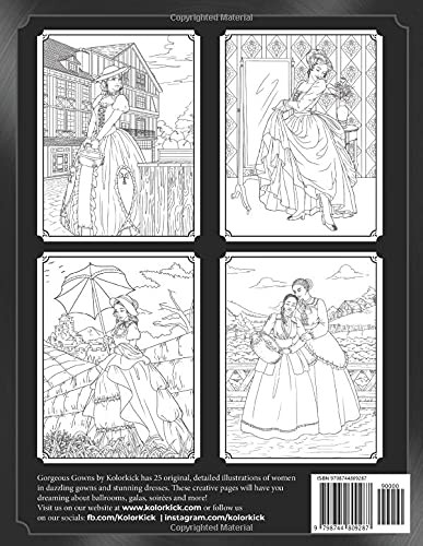 Author:KOLORKICKLanguage:EnglishFormat:PaperbackBook Title:Gorgeous Gowns: An Adult Coloring Book Featuring BPublisher:Independently publishedNumber of Pages:110