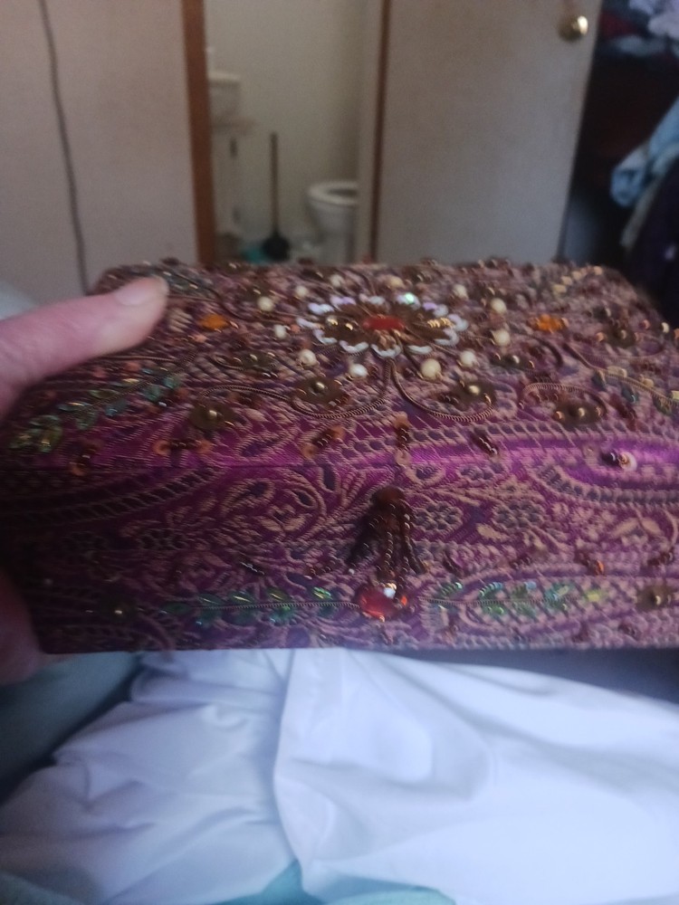 This is a beautiful bead jewelry box suitable for women. It is handmade with wood material and lined with velvet. The box is in a vintage style and has a rectangular shape. It comes with a mirror and is perfect for storing necklaces and earrings. The box is not personalized and is not customized. It features a pearl theme and is ideal for organizing jewelry.