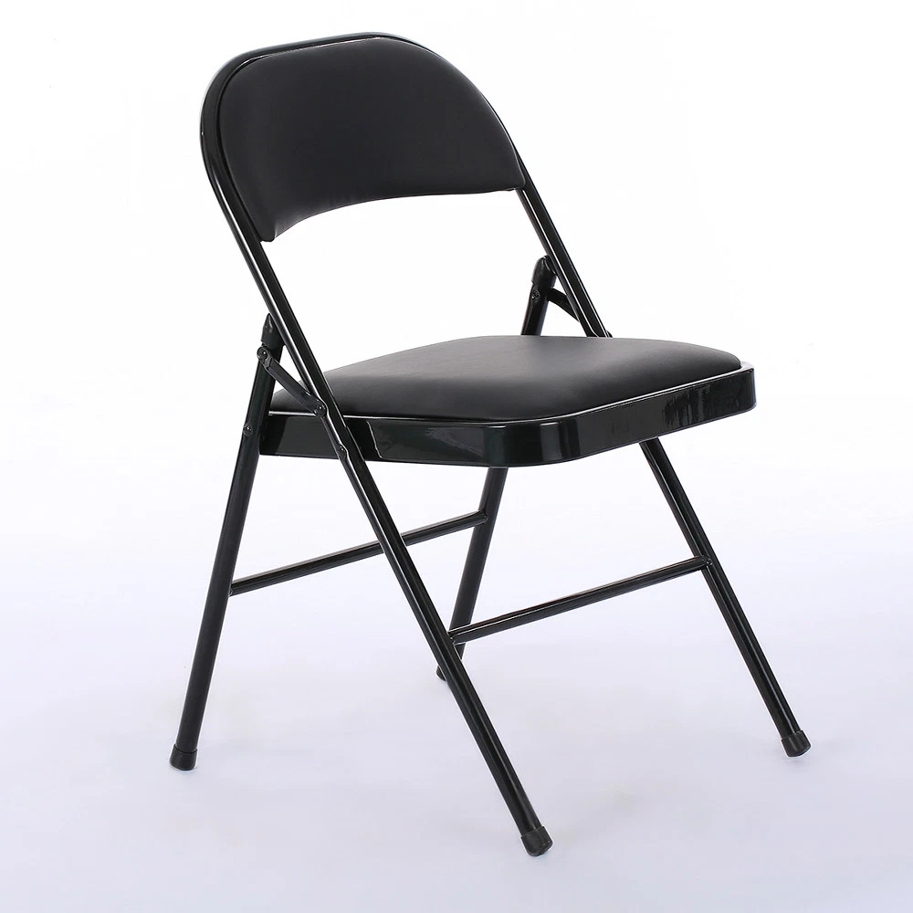 Introductions: This simple style chair combined steel and PVC is suitable for dining room, living room, reception room, exhibition and other places. Sponge filled cushions and backrest give you a more comfortable experience. Sturdy steel frame, two cross - supporting structure can improve the stability of the chair, which makes the chair durable. Steel folding chairs are essential for entertaining guests at large games, parties or events. And they are the best choice when you need additional seats. After use, folding chairs are folded and compact for easy folding and storage. The chairs have smooth surfaces, which is easy to clean. The plastic tube sleeves on chair legs can effectively your floor and prevent scratching. Features: 1. Sturdy and durable steel frame with weight capacity of 150KG 2. Comfortable and soft PVC cushion and backrest, filled with sponge 3. Chairs are easy to carry, foldable and compact, convenient for transportation and storage 4. Plastic tube sleeves can your floor and prevent it from scratching 5. If you have any questions or worries about your order, please keep in with us and we will provide you with timely and satisfactory solutions Specifications: 1. Color: Black 2. Dimensions:(15.75 x 17.72 x 30.71)”/ (40 x 45 x 78)cm(L x W x H) 3. Seat Dimensions: (15.75 x 15.75)" / (40 x 40)cm (L x W) 4. Backrest Dimensions: (17.32 x 7.09)" / (44 x 18)cm (L x W) 5. Material: Iron Tube & PVC 6. Weight Capacity: 330lbs / 150kg 7. Each Chair Weight: 8.38lbs / 3.8kg Package Includes: 6 x Foldable Chairs