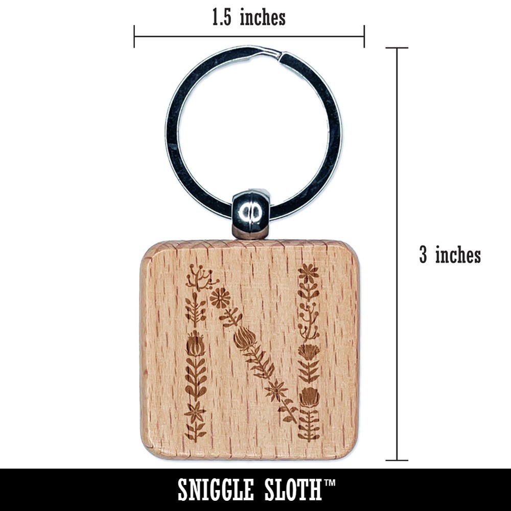 $ 5.28Elegant Botanical Floral Letter B Engraved Wood Square Keychain Tag Charm