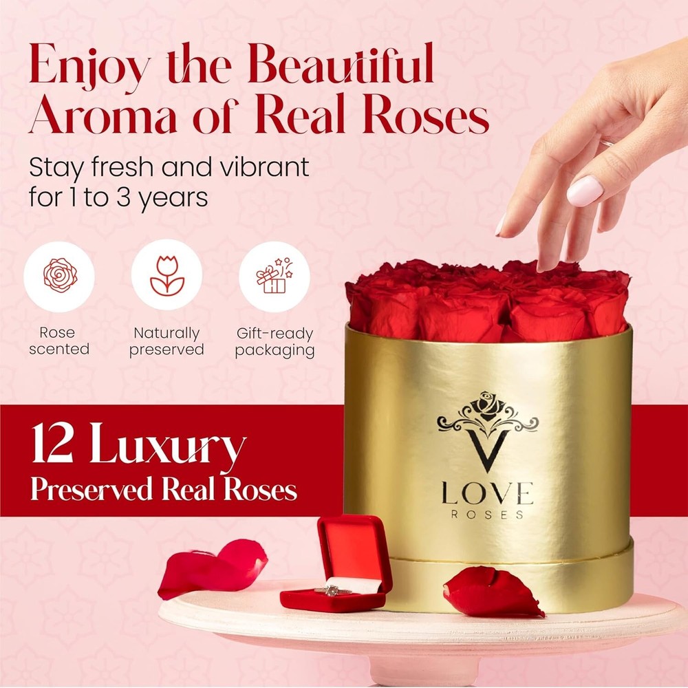 Color: Red Item Width: Preserved Roses Common Name: Rose, Red Rose, Eternal Rose, Preserved Rose gtin13: Does not apply Form: Arrangement & Centerpiece Occasion: Valentine's Day Personalize: No Batteries Required: No Product: Preserved Roses Personalized: No Item Weight: 1.57 Pounds Type: Flower Box Product Dimensions: 7.5 X 7.5 X 8.3 Inches Brand: Unbranded Material: Mixed Materials, Real Roses, Preservation Solution, Box Material Size: 7.5 x 7.5 x 8.3 in Number in Pack: Less Than 10 UPC: Does not apply Artificial/Fresh: Artificial