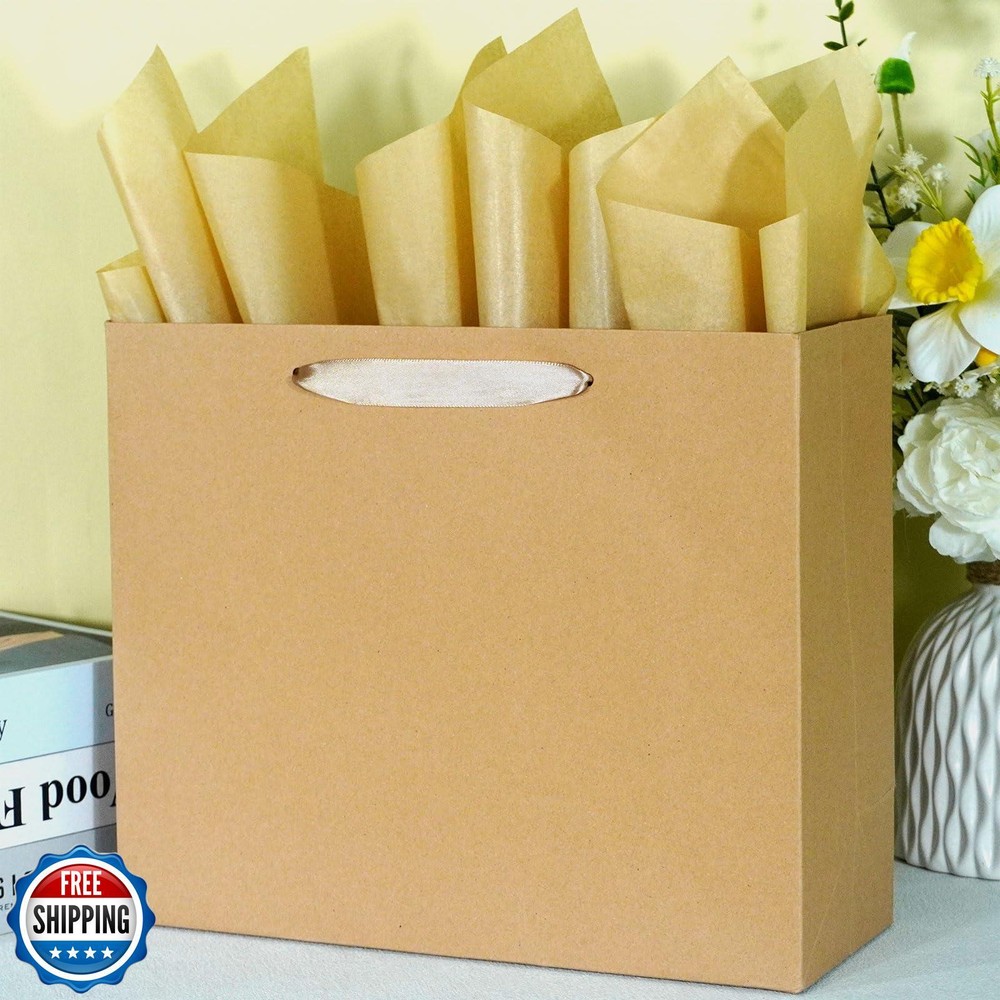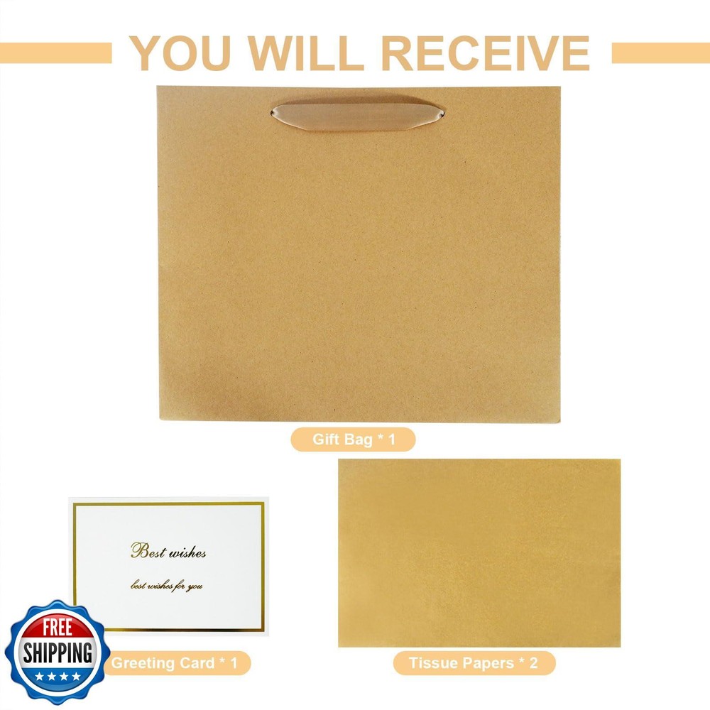 Elegant Brown Gift Bag 11.8"x4.5"x9.8" with Ribbon Handles, Includes Card and Tissue Papers, Perfect for Birthdays, Weddings, Parties, Holidays, Baby Shower Features Complete Gifting Solution: Each bag comes with a matching greeting card and premium tissue papers - everything you need for perfect presentation Luxury Meets Practicality: Generous 11.8"x4.5"x9.8" size accommodates most gifts while maintaining an elegant, proportional look Thoughtful Design: Reinforced base and sturdy construction ensure your gifts are both beautifully presented and well-protected Versatile Occasion Use: Ideal for Weddings, Birthdays, Anniversaries, Baby Showers, Valentine's Day, Mother's Day and other Holidays - your go-to gift packaging for every celebration Guarantee: We wish to provide you the best care, we 100% stand behind our products and hope you love them as much as we do. If you are not satisfied for any reason, please feel free to contact us, we are always on your side! Shipping Free & Fast Shipping: We offer free shipping to most of the USA with a normal delivery time of 3-7 days. However, due to the current situation, additional delivery time (up to 3 weeks) may be required for some items. Alternative Carriers: We may use alternative carriers (e.g., USPS, FedEx, UPS) to ensure your package arrives safely and on time. Due to the use of multiple carriers, we are unable to provide a tracking number automatically. Handling Time: Orders are processed and shipped within 1-2 business days of receiving cleared payment. Shipping Restrictions: Shipping to Alaska, Hawaii, Puerto Rico, Guam, and other US territories may incur shipping charges or delivery restrictions. Please contact us before ordering, or your order can be refunded/cancelled. State Restrictions: Certain items may not be shipped to California due to state regulations. Contact for Tracking Updates: If you require tracking updates or have any concerns about the delivery of your order, please feel free to contact us, and we will be happy to assist you. Return Policy 30-Day Hassle-Free Returns: If you are not completely satisfied with your purchase, you can return the item for free within 30 days of receiving it for a full refund or exchange. Easy Return Process: Contact us, and we will provide you with a prepaid return shipping label and detailed instructions. No Restocking Fee: There are no restocking fees for returns. However, the buyer is responsible for return shipping costs if the return is not due to a seller"s error. Refund Processing: Refunds will be processed within 1 business day of receiving the returned item in its original condition. Feedback Your feedback is extremely important to us. We strive to provide the best products and customer service possible. If you are satisfied with your purchase, please take a moment to leave us a positive review. If you have any concerns or issues with your order, please contact us before leaving negative feedback. We are committed to resolving any problems and ensuring your satisfaction. Contact Us If you have any questions or concerns, please feel free to reach out to our customer support team. You can contact us through the eBay messaging system. We are available Monday to Friday, 9:00 am to 5:00 pm EST, and we will do our best to respond to your inquiry within 24 hours. Thank you for supporting our small family business!