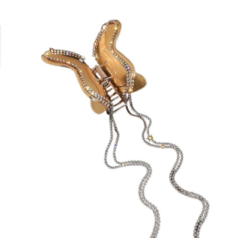 Features: Large hair clip are suitable for women and girls of all ages. Hair clip can be gift to your workmates, wife, mother or more. Hair clip for women are great choice for daily makeup, showers, sports, dance parties, parties, shopping, dating, travel, work, kitchen and more hairstyles, Allowing you to easily create elegant and delicate hairstyles to your dress. size for lady of all ages, meet your different daily mood, dating hairstyles or other needs. Teethes can greatly handle whatever thick/thin supple hair. Enough long clip for hair will hold tightly, perfect for thick, thin, curved, or straight hair.Suitable for girls of all ages, let you solve the trouble of taking care of your hair. The hair clip are decorated with for butterfly shape, which have tightly grip, cling to the hair but not easy to slip and not hurt, hair clip for supple hair are delicate, tightly and not easy to be broken. Specifications: Material: Metal, Rhinestones Size: Approx 7.5cm/ 2.95in Tassel Size: Approx. 28.5cm/ 11.22in Color: Golden, Silver Package Includes: 1pc Rhinestones for Butterfly Shape Hairpin note: Please allow 1-2cm errors due to manual measurement, ensure that you do not mind before you order. 2. Due to the difference between different monitors, the picture may not reflect the actual color of the item.