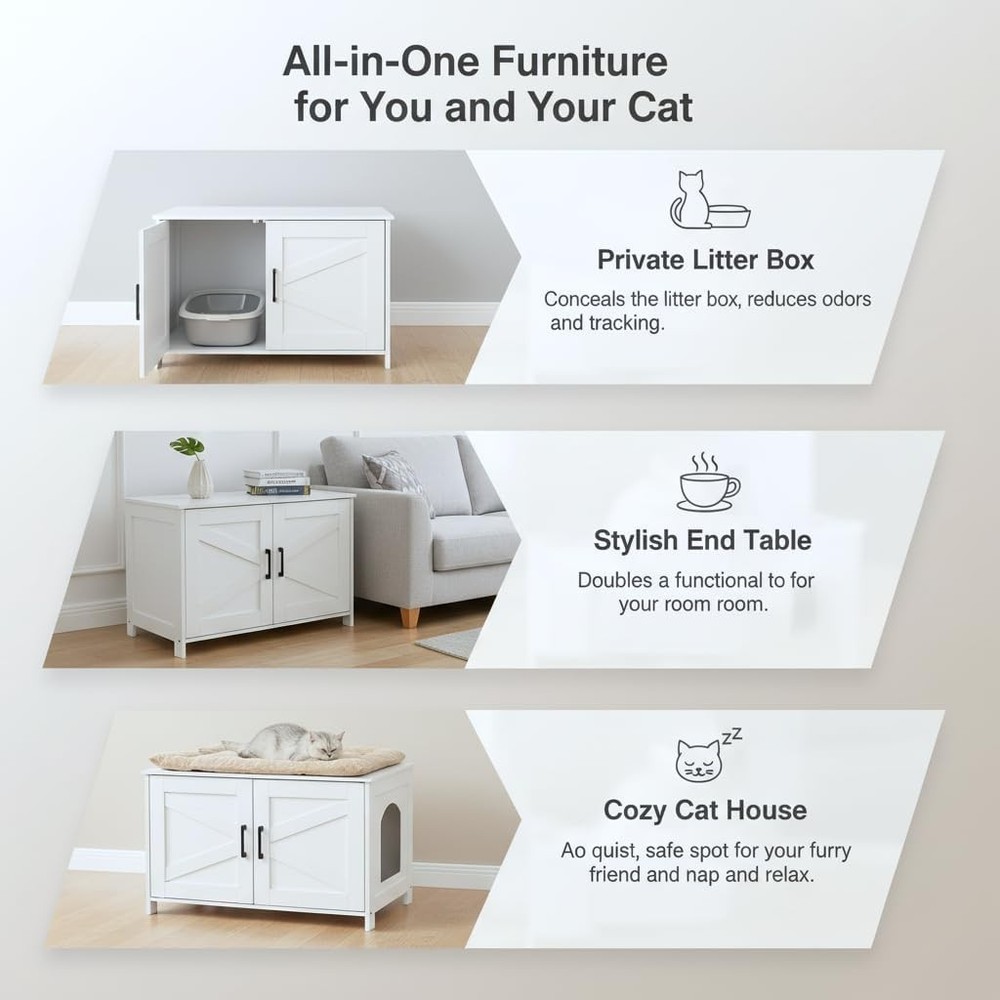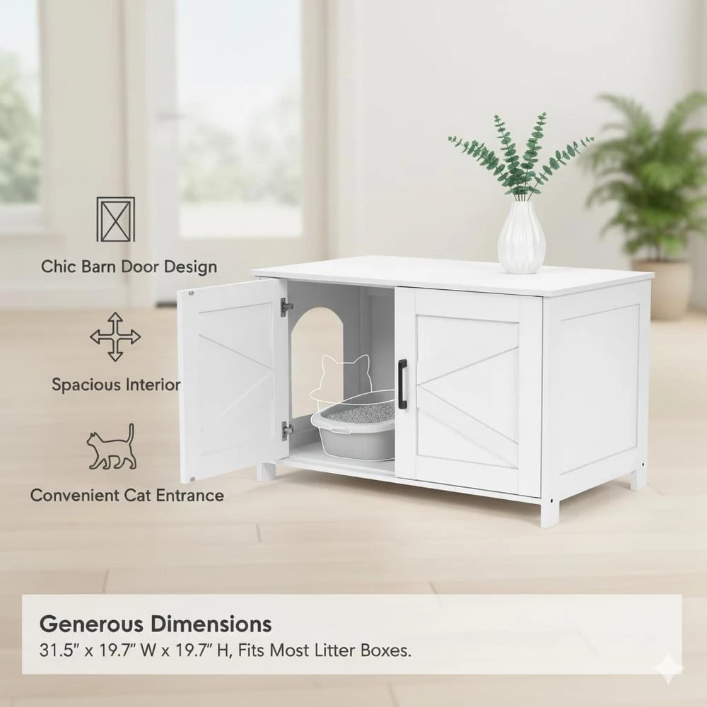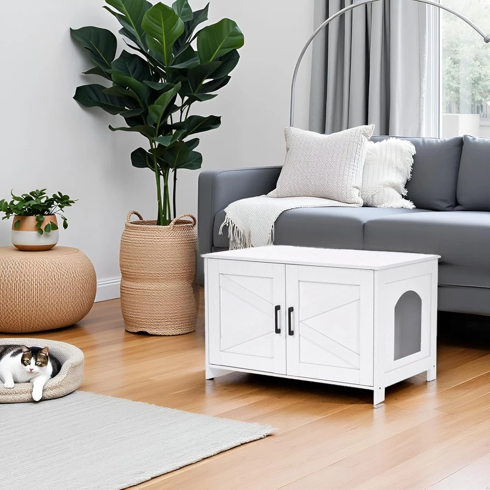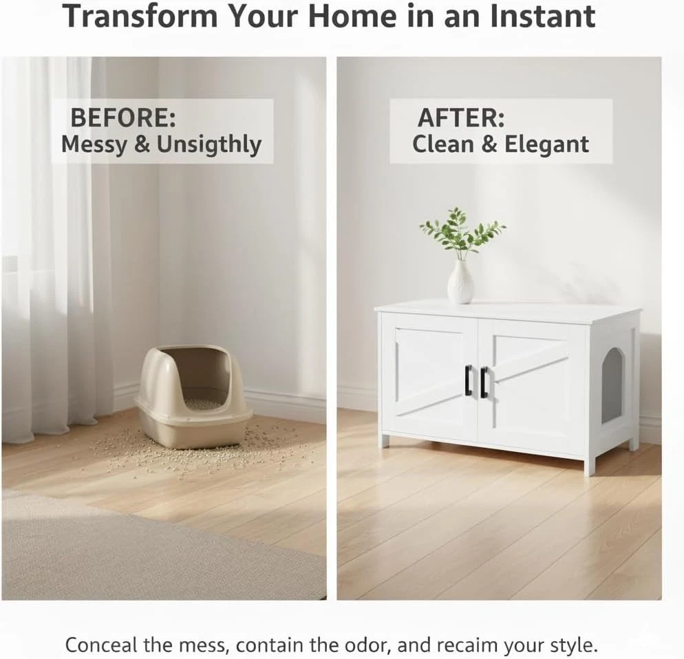 Elegant Cat Litter Box Enclosure - Multi-Functional Wooden Pet Furniture ‹ › ‹ › ‹ › ‹ › ‹ › ‹ › ‹ › ‹ › ‹ › ‹ › ‹ › Elegant Cat Litter Box Enclosure - Multi-Functional Wooden Pet Furniture Features: Pet Friendly: Create a private washroom for your kitty while reducing odors in your home. Generous Size: Sized at 31.5” L x 19.7” W x 19.7” H, easily accommodates most litter boxes to prevent litter scattering. All-in-One Pet Furniture: Use it not only as a litter box enclosure but also as a cozy cat house, stylish end table, or coffee table. Convenient Design: Install the cat entrance on either the left or right for your and your cat’s convenience. Double Cabinet Doors: Allow for easy litter scooping and convenient storage for cat food. Water-Resistant Surface: The veneered surface makes cleaning effortless and fuss-free. Benefits: Transforms an unsightly litter area into a stylish part of your home décor. Provides a safe and cozy spot for your cat to retreat and nap. Makes daily maintenance simple and easy with thoughtful design features. Enhances the aesthetic of your living space while meeting your pet’s needs. Offers a practical solution by combining functionality and elegance. Why Choose Our Elegant Cat Litter Box Enclosure? Are you tired of the clutter and odors that come with having a litter box in your home? Our Elegant Cat Litter Box Enclosure is the perfect solution, providing your feline friend with a private washroom and keeping your home stylishly organized. With a spacious interior that fits most litter boxes, this multi-functional piece of furniture is not only practical but also enhances your living environment. Besides, its easy-to-clean water-resistant surface ensures maintaining cleanliness is a breeze. Elevate your home décor while ensuring your pet’s comfort. Order your Elegant Cat Litter Box Enclosure today and transform your space! Shipping Free & Fast Shipping - We offer free shipping to most of the USA with a normal delivery time of 3-7 days. However, due to the current situation, additional delivery time (up to 3 weeks) may be required for some items. Alternative Carriers - We may use alternative carriers (e.g. USPS, FedEx, UPS, etc.) to ensure your package arrives safely and on time. Due to the use of multiple carriers, we are unable to provide a tracking number automatically. Handling Time - Orders are processed and shipped within 1-2 business days of receiving cleared payment. Shipping Restrictions - Shipping to Alaska, Hawaii, Puerto Rico, Guam, and other US territories may incur shipping charges or delivery restrictions. Please contact us before ordering, or your order can be refunded/cancelled. State Restrictions - There may be restrictions based on your state of purchase. For example, certain items may not be shipped to California due to state regulations. Contact for Tracking Updates - If you require tracking updates or have any concerns about the delivery of your order, please feel free to contact us, and we will be happy to assist you. Return 30-Day Hassle-Free Returns - We want you to be completely satisfied with your purchase. If you are not, you can return the item within 30 days of receiving it for a full refund or exchange. Easy Return Process - To start a return, simply contact us and we will provide you with a prepaid return shipping label and detailed instructions. Restocking Fee - There are no restocking fees for returns. However, the buyer is responsible for return shipping costs if the return is not due to a seller's error. Refund Processing Time - Refunds will be processed within 5 business days of receiving the returned item in its condition. Payment We accept all major credit cards, PayPal, and Apple Pay for your convenience. Your payment information is secure and encrypted to ensure a safe and seamless transaction. Please complete your payment within 3 days of purchase to avoid any delays in shipping. Feedback Your feedback is extremely important to us. We strive to provide the best products and customer service possible. If you are satisfied with your purchase, please take a moment to leave us a positive review. If you have any concerns or issues with your order, please contact us before leaving negative feedback. We are committed to resolving any problems and ensuring your satisfaction. Contact Us If you have any questions or concerns, please feel free to out to our customer support team. You can contact us through the eBay messaging system. We are available Monday to Friday, 9:00 am to 5:00 pm EST, and we will do our best to respond to your inquiry within 24 hours. Buy it now and enjoy a pleasant shopping experience! Model: Cat Litter Box Enclosure MPN: Cat_Litter_Box_Enclosure Unit Quantity: 1.00 count Type: Litter Box Enclosure