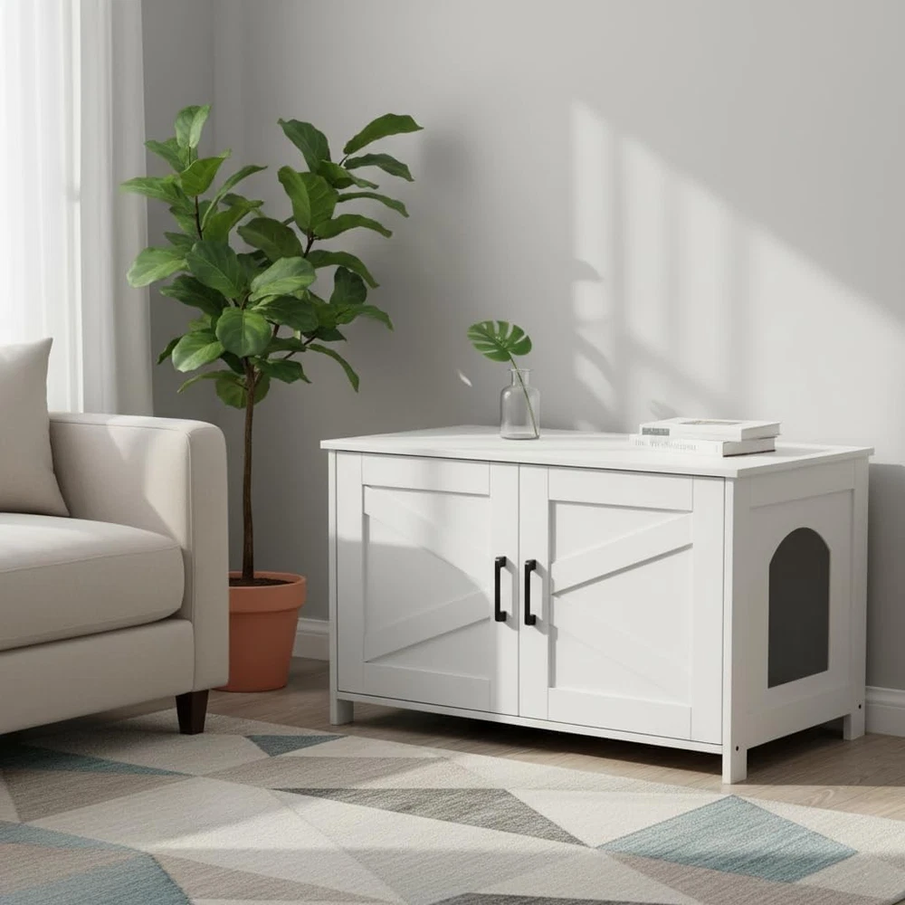 $ 223.61Functional Cat Furniture: White & Gold Litter Box Enclosure with Cabinet Doors