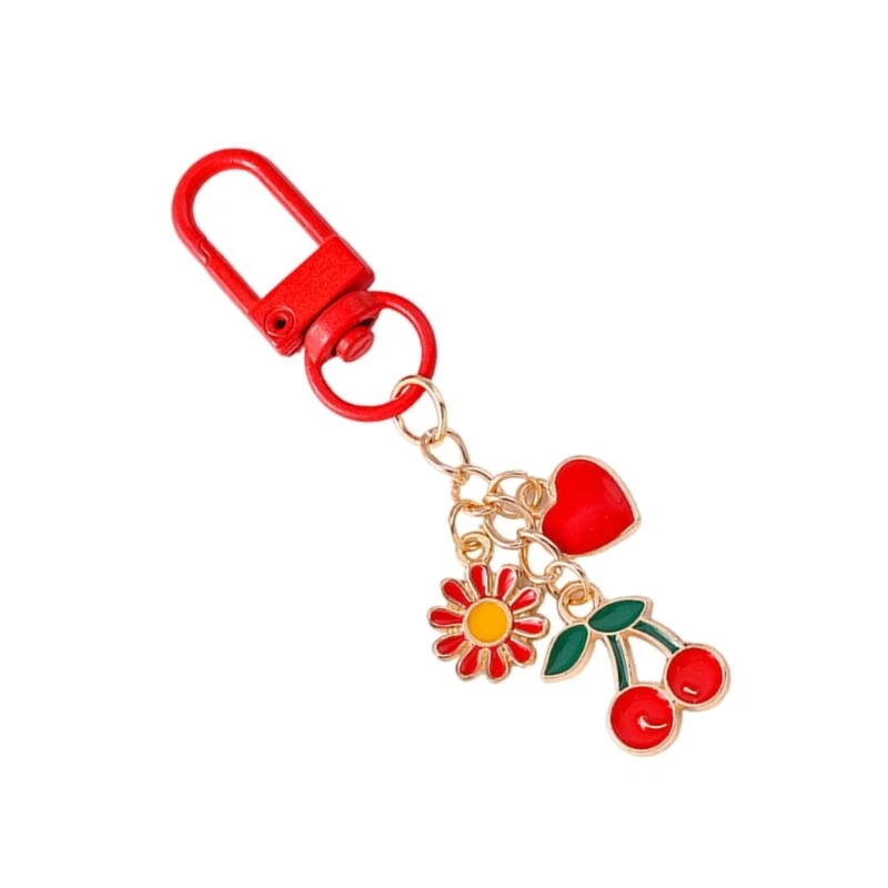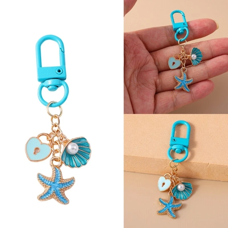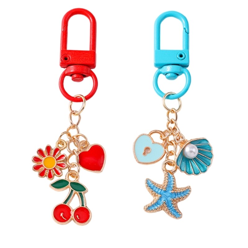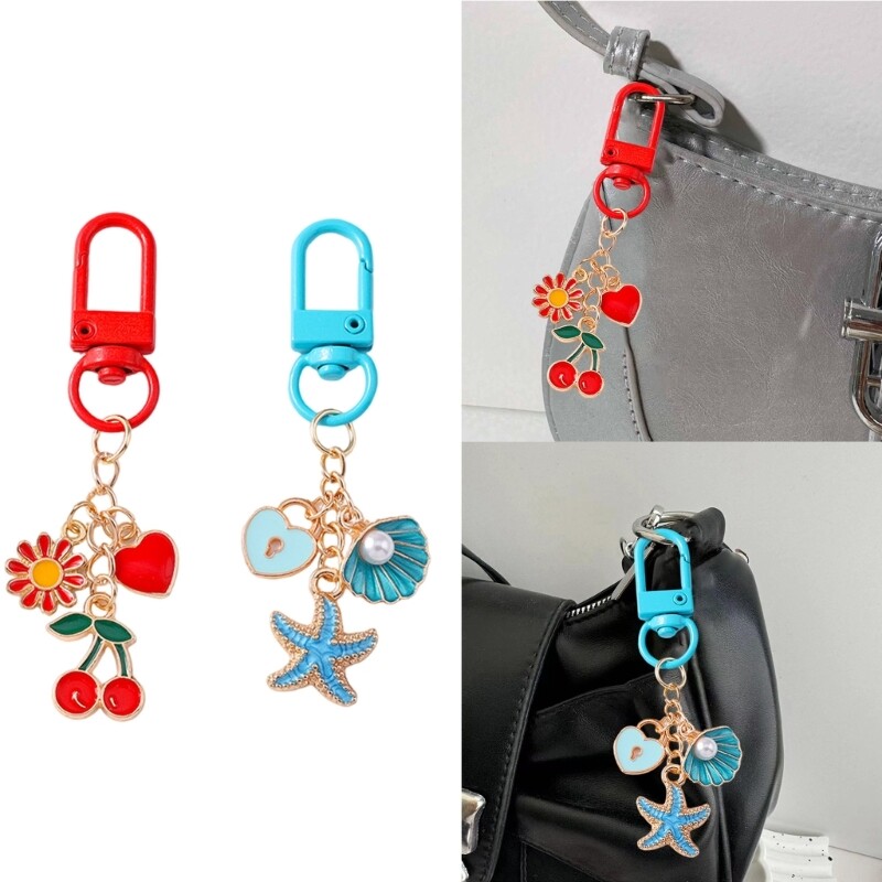 Elegant Cherry Keychain Blue Beach Charm Ocean Pendant Bag Accessory