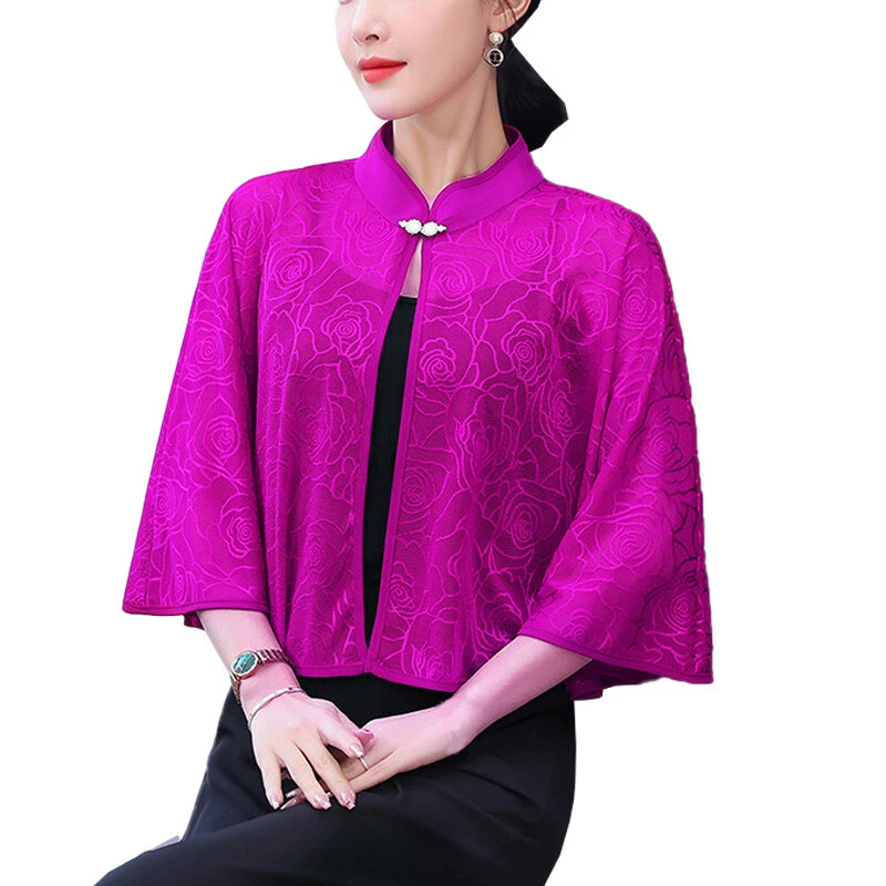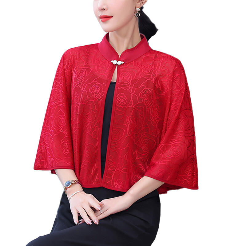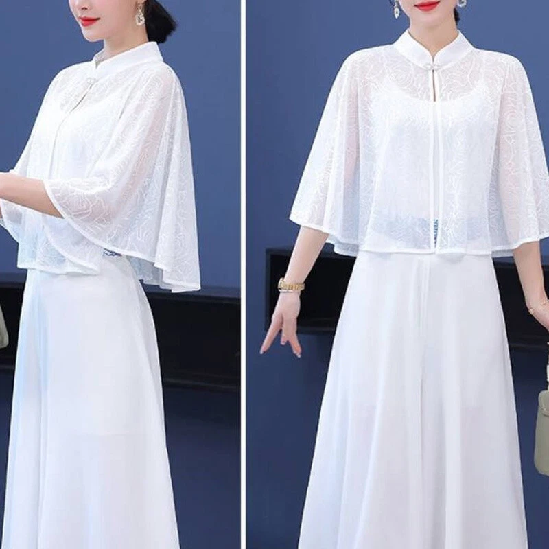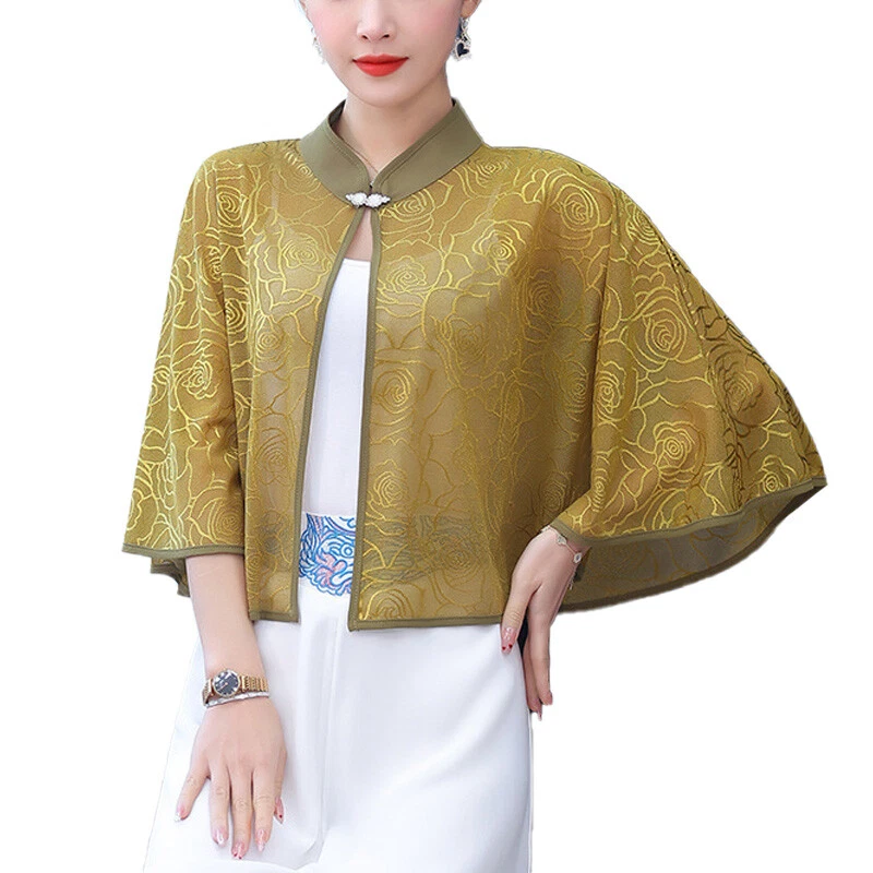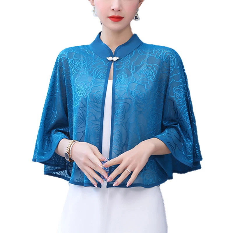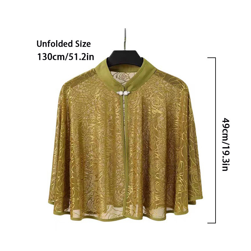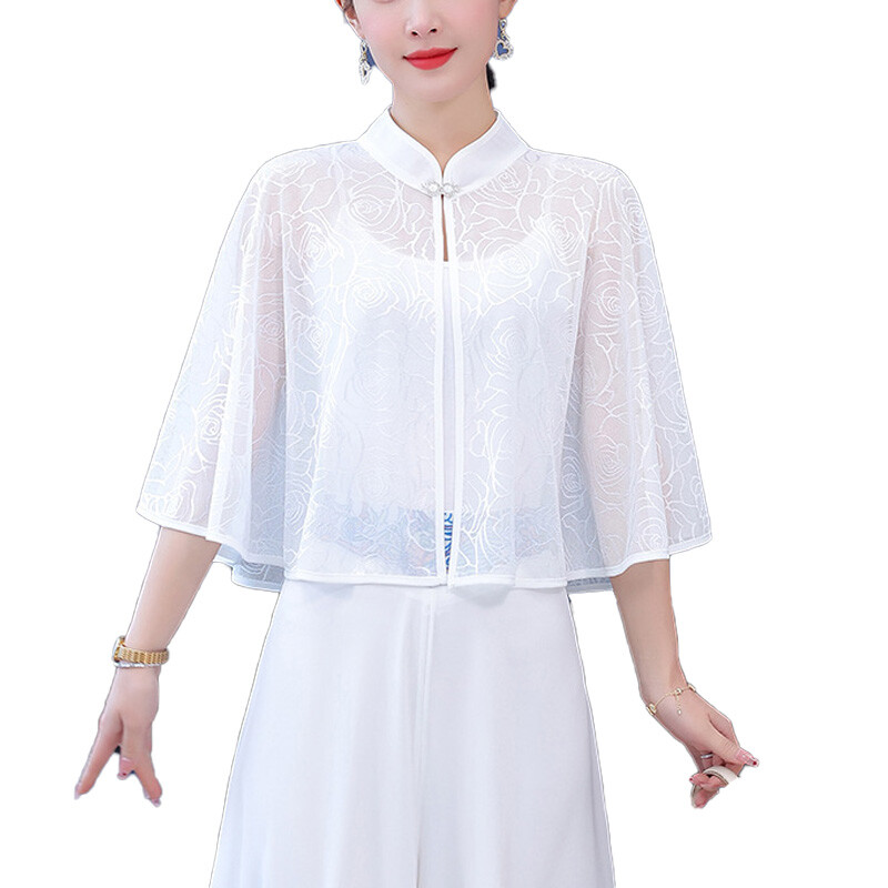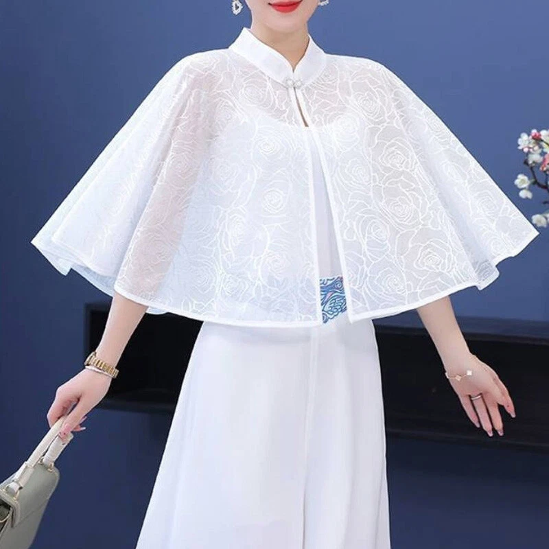 This chic chiffon shawl is a must-have for summer! The lightweight fabric feels incredibly soft and breathable, keeping you cool while adding a touch of elegance. The stand collar and loose sleeves give it a stylish, feminine look—perfect for dressing up any outfit. Great quality and comfortable fit, ideal for both work and casual outings. Love the retro vibe! Fast shipping and excellent service too. Highly recommend!