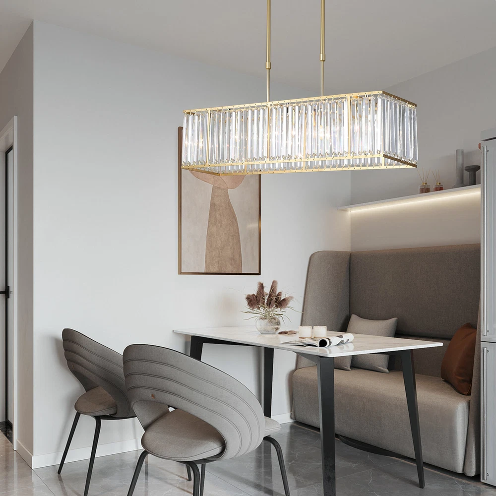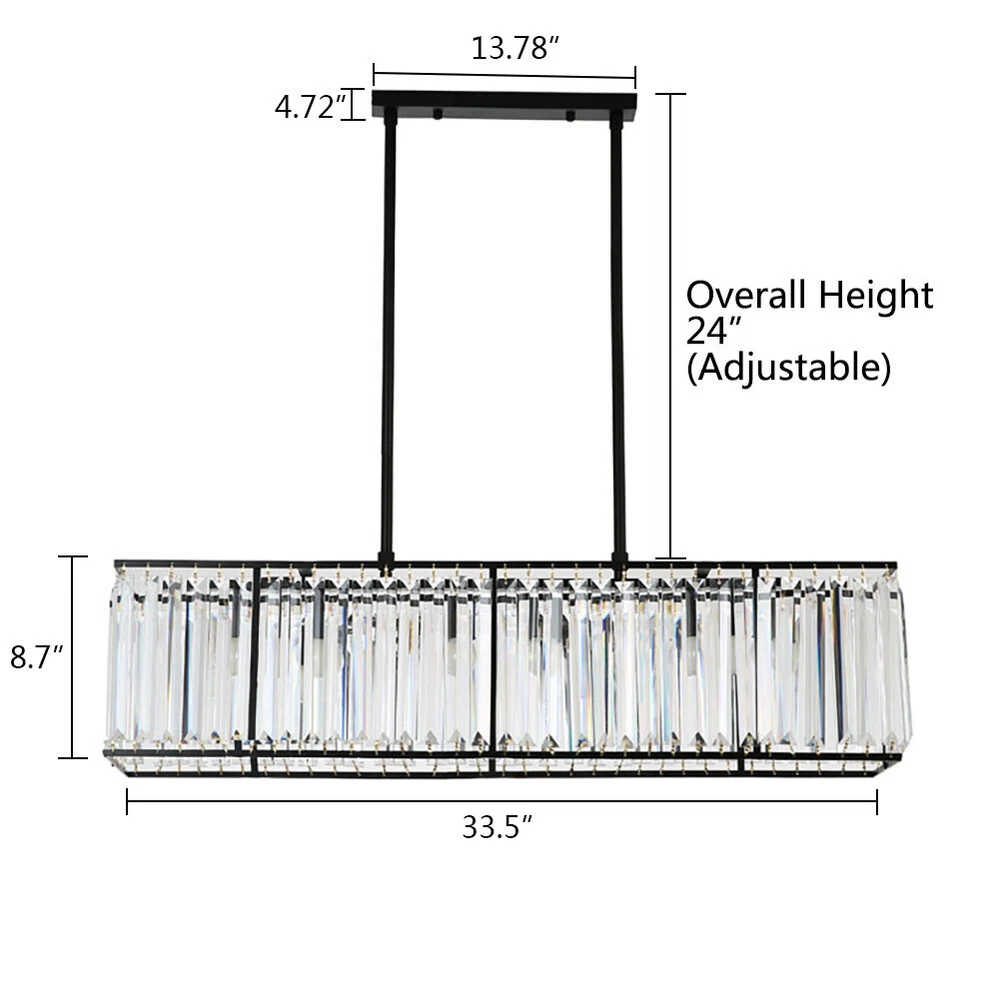 Elegant Crystal Chandelier Modern Ceiling Fan Light Pendant Lamp Fixture Indoor SKU : HG-HCXLST-4708-US ( Multi-head LED Ceiling Light ) About this item 【 MODERN LOOK 】 This LED pendant light is designed in modern style, just like a cloud lying on your ceiling, looking luxurious and elegant; DIMENSION: L42.5”x H5.9” DIMMABLE AND COLOR CHANGEABLE:72W Dimmable Remote control take dimmable brightness adjustable and 3 colors temperature to meet your different needs (3000k warm white, 4000k neutral white,6000k cold white).Functional dimmable range 10%-100% ENERGY SAVING:Our Flush mount lighting with LED chips save energy up to 80% than halogen lamp,incandescent ceiling light fixture Over 50,000 hour lifespan.Buying low-power,high-brightness LED ceiling lights, Eyes Protection:The LED ceiling light brings you the most natural lighting. And the PVC made lampshade would lower the transmittance of lighting, which can protect your and your child’s eyes from glare lighting. 【 LONG LIFESPAN 】 High-quality PC finished by powder coating applied, resulting in anti-corrosion, anti-faded, not easy to scratch, much better than others on the market; No need to change bulb yourself anymore! 【 WIDE APPLICATION 】 Easy to Install and recommended for indoor decoration, such as living room, dining room, foyer, bedroom, Kitchen, entry, hallway, office, etc ---Please check the color and size before order--- Item Description Dimension:L42.5” x H5.9” Power: 72W LED chip type: SMD2835 Color Rendering Index(CRI): 90 Input Voltage: AC110-240V Style: Modern Mount Type: Flush Mounted Material: Top quality PC Notes: We recommend installing by professionals -When installing and cleaning light, you must cut off the power supply. SKU:HG-HJWJL-6697 (100cm Ceiling Light) Features: 3 Colour To Choose From: Warm White (2700 K), Natural White (4500 K), Cool White (6000 K). This Ceiling Light Can Be Freely Adjusted Via The Remote Control, Convenient And Fast, Satisfying Different Lighting Requirements In Your Life. Adjustable Brightness,Comfortable Light, Reduce Eye Fatigue, Protect Eyesight Peacock Shape, Beautiful And Elegant, High-Temperature Paint, Hydraulic Mold Shaping, Stamping Process Led Light Source, Long Life, Energy Saving, Low Heat, Healthy Environment, High Color Rendering Light Shell After Pressing, Grinding, Polishing Process, Through Special Processing To Prevent Cut Around Applicable To Different Environments Such As Living Room, Bedroom, Study, Restaurant Etc Highly Transparent Acrylic Material Is Used To Ensure The Light Transmittance And Good Density And Uniformity Are Achieved Specification: Category: Lighting Style:Modern Voltage: 110V Diameter: 100cm/39.37in Height: 10.5cm/4.13in Net Weight: 4.85kg Recommended Room Size: 20-25 ㎡ Switching Type: Remote Control & Wall Switch Materials: Acrylic+Iron 3 Color Temperature: 2700K-4500K-6000 Lamp Type:Led Lighting Direction: Ambient Light Power: 100W Luminous Flux: 15000lm Bulb Base: Led Application: Living Room,Bedroom,Dining Room,Study Room Packing List: 1x Ceiling Light 1x Screw Pack 1x Hanging Board 1x Remote Control (Includes two AA batteries ) 1x Manual SKU:HG-HCX-2456-US ( Spiral Island Linear Pendant Light ) Details Material: aluminum Chips:COB LED Colour Temperature: 4000 K Size:Small L33.46" Color: matte black with gold leaf accents Size choices: L33.46" (small) or L51.57 (large) Crafting processes: pressing, bending, polishing, surface finishing etc. 20W for the small size, 30W for the large size. Power by built-in driver and work with LED COB that are installed inside the fixture scrollls which enhance the effect of multi lighting reflections, boosting perfect esthetic integration of light and shadow. This island pendant is featured by fabulously spiral silhouette, treated in matte black accented with gold leaf inside, perfect for dining room, living room, bedroom, bar and restaurant etc. Included 4 X 5W COB that outputs 1600 lumens of intense light with 4000K colour temperature. Completed kits delivery and you needn’t do any assembly jobs at all. About this item ✔ The creatively spiral-shaped Island chandelier expertly handcrafted . The stylish spirals with high power LED chips installed inside not only reduce direct diffusion, but also enhance the effect of multi lighting reflections, boosting perfect esthetic integration of light and shadow. It is exquisitely highlighted by gold leaf and accented with matte black finish, lends timeless glamour and a stunning touch of elegance to your decorating place. ✔ Equipped with the newest COB LED technology that outputs 1600 lumens of intense light with 4000K colour temperature. 4 X 5W COB (included) carry neutral warm light and display you a comfortably cozy atmosphere. ✔ Dimensions (Overall): 59 inches (Max H) x 33.46 inches (W) x 5.31 inches (D). Pendant wire: adjustable 51.18 " - Perfect for dining room, kitchen island, foyer, living room, cafe bar, gallery showroom and restaurants etc. ✔ The whole pendant fixture is kindly designed for completed kits delivery, there are no KD and no assembling troubles at all. You only need to install the canopy to your ceiling. SKU:HG-HCX-2205 ( 3-Light Rectangular Chandelier ) Elegant Crystal Ceiling Light Kitchen Dining Room Chandelier Pendant Lamp E12 About this item Modern design. Not only lighting but also decoration for your space. S ophisticated modern exterior design adds a touch of luxury in life, a high-ended gorgeous decoration for your bedrooms, living rooms, corridors, entryways and living areas.Creates warmth graceful atmosphere perfectly suitable for your decoration requirements. Adopts high-quality K9 clear crystal, superior metal stuff , made by fine craftsmanship, how beautiful and gorgeous! The chandelier not only could adjust the height according to your needs but decorate your space, create warmth atmosphere to keep a good mood. Well-packaged and easy installation. Technical Details Light Source:3 x E12 Max 50W (do no