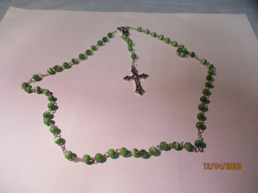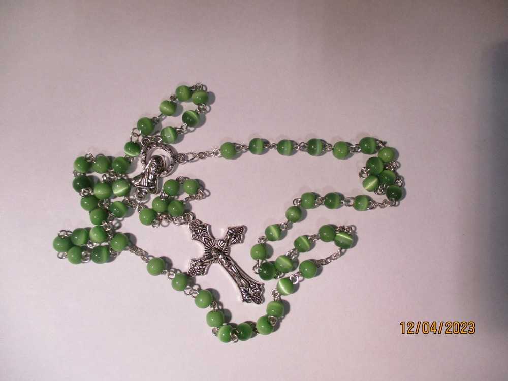 Beautiful Muted Green Bead Rosary Silver Crucifix 4 mm Glass Faceted Beads Beads have a beautiful pearlescent lustrous quality 15 in length Condition: NEW About: About all my Rosaries sold here: This group of rosaries that I will be listing came from a Highland Park estate. They are the most beautiful and unusual rosaries I have seen in a long long time. GORGEOUS. SEE PHOTOS!!! P.M. Beautiful Muted Green Bead Rosary Silver Crucifix 4 mm Glass Faceted Beads Beads have a beautiful pearlescent lustrious quality 15 in length Condition: NEW About: About all my Rosaries sold here: This group of rosaries that I will be listing came from a Highland Park estate. They are the most beautiful and unusual rosaries I have seen in a long long time. GORGEOUS. SEE PHOTOS!!! P.M. Images sell! Get Supersized Images & Free Image Hosting Attention Sellers - Get Templates Image Hosting, Scheduling at Auctiva.com. Track Page Views With Auctiva's Counter