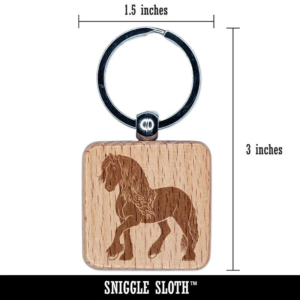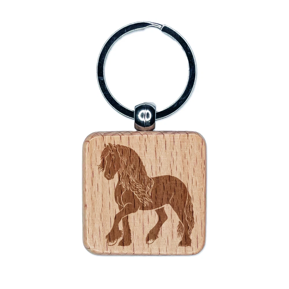 Elegant Friesian Horse Engraved Wood Square Keychain Tag Charm
