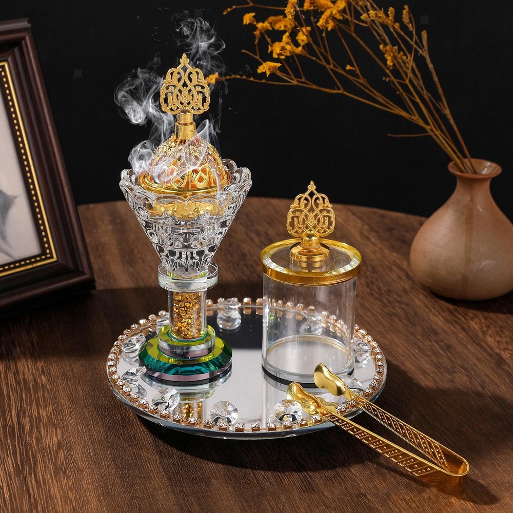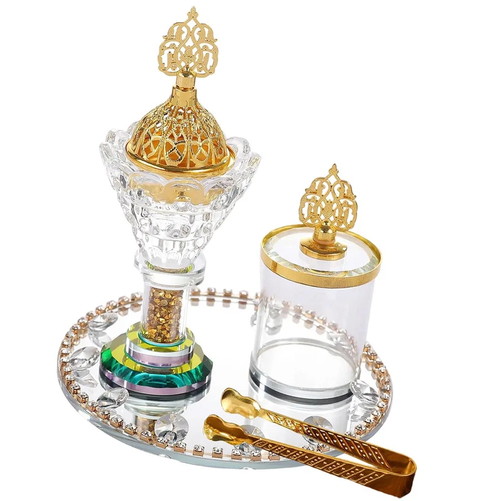 Home & Garden | Jewelry & Watches | Sporting Goods | Business & Industrial | eBay Motors | Toys & Hobbies | Health & Beauty Glass Incense Burner Set Tabletop Ornament for Yoga Office Bedroom Description: 【Package Including】: Arabian incense burner set, including 1 incense burner, 1 tray, 1 tongs, 1 storage jar 【Delicate Design】: This traditional Arabian incense holder is designed with a lotus shape, has fine workmanship and details, is a nice table centerpiece, great for Ramadan decoration 【Premium Material】: This censer set is made of glass and metal material, transparent appearance, sturdy, not easy to break and ensures a long time to use 【Wide Applications】: This incense burner can be used as home decoration, handicrafts or classical furniture, etc. It is very suitable for living room, office, bedroom, meditation room, Spa, yoga, etc 【Nice Gift】: The incense burner set is a great gift for friends or family on Ramadan, holiday, housewarming, etc Specification: Material: Glass Iron Size Chart: 15cmx17cm/5.91inchx6.69inch Package Includes: 1 Incense Burner Set Note: Please allow slightly errors 1-2cm differences due to manual measurement. Payment Shipping Returns If you are bidding or ordering more than one item, the items will be combined into one order automatically thus you can pay altogether. If you want not to combine, please buy one and immediately pay one separately. Please pay what you win in 7 days. Unpaid Dispute will be automatically open if payment is not received after 7 days. If you pay the bill after received unpaid dispute, please email us to close the unpaid dispute. Because the unpaid dispute will not be closed automatically, and we may ignore it. The buyer is responsible for any applicable import duties and local taxes. Please verify with your customs before making your purchase. Please verify your address during checkout. We are not responsible for any wrong or undeliverable addresses. We are committed to give you the best customer service possible. If for any reason you are unsatisfied with a purchase, please contact us and we'll assist you with a prompt solution. Please let us work on the issues. We'd like to settle any problem in a friendly manner. Please do not open a case on eBay or PayPal, or leave any negative or neutral feedbacks directly! We always reply to messages within 2 business days (off-duty at weekend). Due to the difference of time zone between Hong Kong and your location, sometimes the answer will be delayed. If you do not get a response from us after 2 business days, please check your junk or spam mailbox. Unsatisfied product can be returned within 30 days from the delivery date . We can offer a full refund or exchange, but we are not responsible for return shipping cost. Please contact us to get a RMA number before sending out your return. Feedback: 1. Since your feedback is very important to our business's development, we sincerely invite you to leave positive feedback with four 5-Detailed Selling Rating (DSR) to us basing on your satisfaction with our commodity and service. It's just take you 1 minute. 2. Unfortunately, If you are planning to give us a neutral/negative feedback because of your bad buying experience with us, please contact us at any time so as to clear up your discontent and resolve the problem. Featured Products People always bought together with