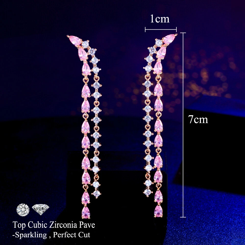 Elegant Gold Plated Long Pink Tassel Zircon Drop Earrings Women Banquet Jewelry There’s an old saying that: Jewelry is woman’s best friend. And one appropriate luxury jewelry helps to spice up your charm and beauty. And here’s the reason why you choose us: ★ We adopts high-grade Cubic Zirconia, which displays pure and fascinating color; ★ All our items are Elaborate, Gold Plated (white gold plated/yellow gold plated/black gold plated), by which the texture is smooth and with fancy look, and will be appropriate for so many occasions; ★ Our items are with Exquisite Design, which shows your excellent taste, and could catch people’s attention easily. ★ Ideal gift for mother, wife, girlfriend, daughters, brides, bridesmaids, ect. Specification Type: Dangle/Drop Earrings Stone Material: Cubic Zirconia Base Metal Material: Brass Metal Material: Gold Plated Shape: Long Water Drop Tassel Color: Pink Suitable Occasion: Daily, Holidays, Party, Engagement, Wedding, Anniversary, Valentine’s Day, Carnival, Performance, ect. Package Includes 1 Pair of CZ Drop Earrings Please note: *Please bear in mind that there might be 1~2cm difference due to manual measurement. *Our digital images are as accurate as possible. However, different monitors may cause colors to vary slightly. *We offer after-sale service, if there is any item problem, please feel free to contact us via eBay message first, your kind understanding is much appreciated. About Us Payment Shipping Returns Contact us About Us Topjewel33 is a newly-established online store which dedicates to provide excellent luxury jewelry products, such as earrings, rings, necklaces, bracelets, brooches, hair accessories, and high grade jewelry sets. We target worldwide market, and we strive for offering you unbeatable low price and satisfied customer service. Payment We accept PayPal payment only. Payment must be received within 7 days from the date of purchase. Shipping We do hope all our customers could receive the order asap, so normally, the order will be sent out within 2 working days. And as the delivery is handled by the third party, sorry that we could not guarantee which date you could receive the package. And sometimes the delivery might be a little bit delay, especially in high volume or holiday seasons. However, please don’t worry and feel free to contact us via eBay message, and we will do our best to help. And we sincerely apologize for any inconvenience may cause. Sometimes custom tax might be required, and we are afraid that it will be covered by the buyers, thank you for kind understanding. Returns We provide 30 days money back return policy. And if you have any problem with the item, please make sure the item is in the original package and feel free to contact us via eBay message first, thank you for kind understanding and cooperation. Contact us We offer customer service, if you have any problem with the item before/during/after the purchase, please feel free to contact us via eBay message, and we will get back to you asap. Thank you for your kind patience.