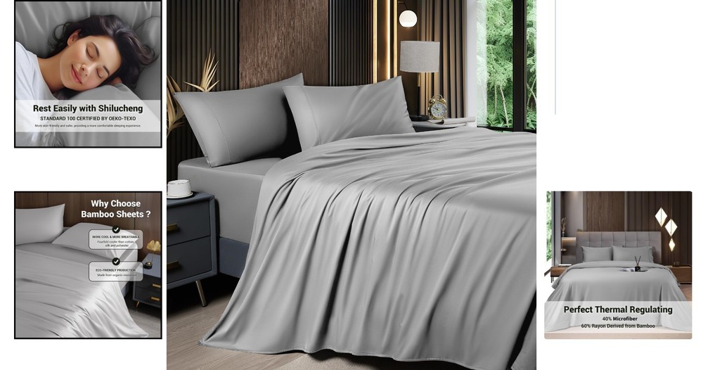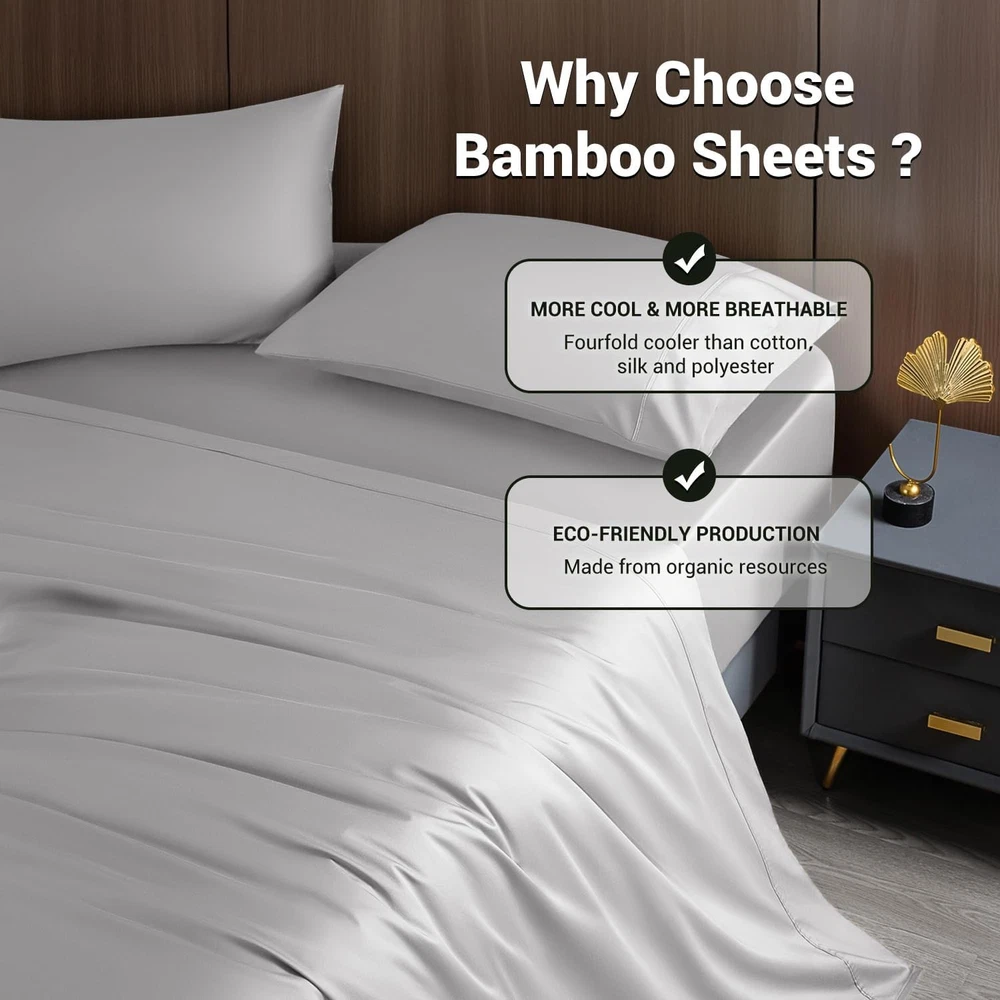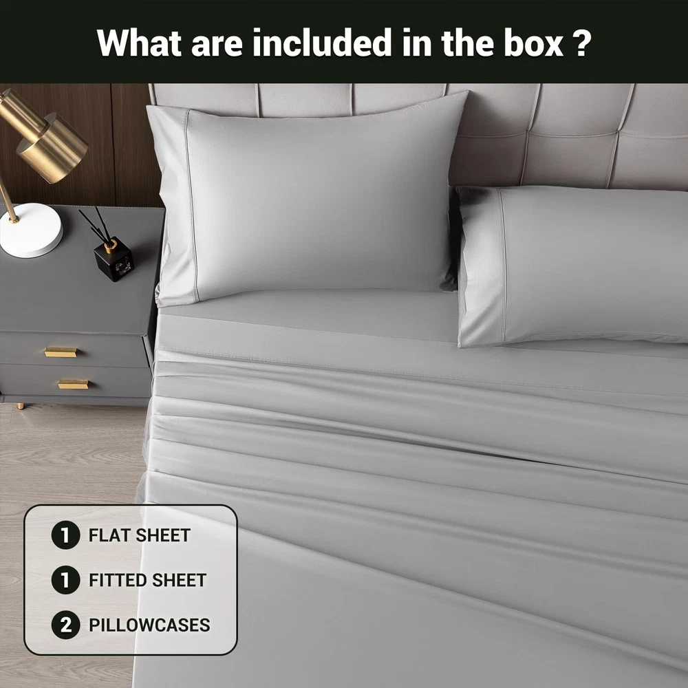 Elegant Grey King Sheet Set - Deep Pocket, Breathable & Soft Bedding ‹ › ‹ › ‹ › ‹ › ‹ › ‹ › ‹ › ‹ › ‹ › ‹ › Elegant Grey King Sheet Set Deep Pocket, Breathable & Soft Bedding 60% Rayon Derived from Bamboo and 40% Microfiber Your Dream Bed Awaits: Shockingly Soft: Experience the perfect blend of comfort and luxury with our unique blend of 60% rayon derived from bamboo and 40% microfiber. These sheets offer a silky, smooth surface that feels like sleeping on a cloud. Temperature Control: Equipped with innovative temperature-regulating technology, these sheets absorb excess heat in summer, ensuring you stay cool and dry all night long. Say goodbye to restless nights, especially for hot sleepers! Affordable Luxury: Indulge in modern luxury with our King size 4-piece sheet set, including 1 flat sheet (105" x 102"), 1 fitted sheet (78" x 80" x 16"), and 2 pillowcases (20" x 40"). These sheets are designed for deep mattresses, providing a secure fit that won't slide, no matter how much you move in bed. Easy Care: Unlike traditional silk sheets that require delicate cleaning, these luxurious sheets are machine washable. Simply wash in cold water on a gentle cycle and tumble dry on low. For a wrinkle-free experience, remove from the dryer promptly. Durable Elegance: Made from high-grade materials and certified by Standard 100 by OEKO-TEX, our sheets are both luxurious and durable, ensuring long-lasting softness and quality. Why Choose Our King Sheet Set? If you’re seeking the perfect bedding solution that combines elegance with functionality, our Elegant Grey King Sheet Set is your answer. Designed for the discerning individual, these sheets will transform your sleeping experience into one of exquisite comfort and style. Don’t compromise on your comfort. Elevate your bed and awaken refreshed with a luxurious sheet set that fits your lifestyle. Order now to experience serene, luxurious sleep every night! Shipping Free & Fast Shipping - We offer free shipping to most of the USA with a normal delivery time of 3-7 days. However, due to the current situation, additional delivery time (up to 3 weeks) may be required for some items. Alternative Carriers - We may use alternative carriers (e.g. USPS, FedEx, UPS, etc.) to ensure your package arrives safely and on time. Due to the use of multiple carriers, we are unable to provide a tracking number automatically. Handling Time - Orders are processed and shipped within 1-2 business days of receiving cleared payment. Shipping Restrictions - Shipping to Alaska, Hawaii, Puerto Rico, Guam, and other US territories may incur shipping charges or delivery restrictions. Please contact us before ordering, or your order can be refunded/cancelled. State Restrictions - There may be restrictions based on your state of purchase. For example, certain items may not be shipped to California due to state regulations. Contact for Tracking Updates - If you require tracking updates or have any concerns about the delivery of your order, please feel free to contact us, and we will be happy to assist you. Return 30-Day Hassle-Free Returns - We want you to be completely satisfied with your purchase. If you are not, you can return the item within 30 days of receiving it for a full refund or exchange. Easy Return Process - To start a return, simply contact us and we will provide you with a prepaid return shipping label and detailed instructions. Restocking Fee - There are no restocking fees for returns. However, the buyer is responsible for return shipping costs if the return is not due to a seller's error. Refund Processing Time - Refunds will be processed within 5 business days of receiving the returned item in its condition. Payment We accept all major credit cards, PayPal, and Apple Pay for your convenience. Your payment information is secure and encrypted to ensure a safe and seamless transaction. Please complete your payment within 3 days of purchase to avoid any delays in shipping. Feedback Your feedback is extremely important to us. We strive to provide the best products and customer service possible. If you are satisfied with your purchase, please take a moment to leave us a positive review. If you have any concerns or issues with your order, please contact us before leaving negative feedback. We are committed to resolving any problems and ensuring your satisfaction. Contact Us If you have any questions or concerns, please feel free to out to our customer support team. You can contact us through the eBay messaging system. We are available Monday to Friday, 9:00 am to 5:00 pm EST, and we will do our best to respond to your inquiry within 24 hours. Buy it now and enjoy a pleasant shopping experience! Item Length: King Sheet Sets Item Width: King Sheet Sets Unit Quantity: 1 count Material: Microfiber,Rayon,Rayon Derived from Bamboo Features: Breathable,Cooling,Deep Fitted Theme: Modern Care Instructions: Machine Wash Room: Bedroom Size: King Type: Sheet Set Color: Gray Pattern: Solid Thread Count: 1800 Style: Modern Shape: Rectangular GSM (Grams per Square Meter): 301 to 450