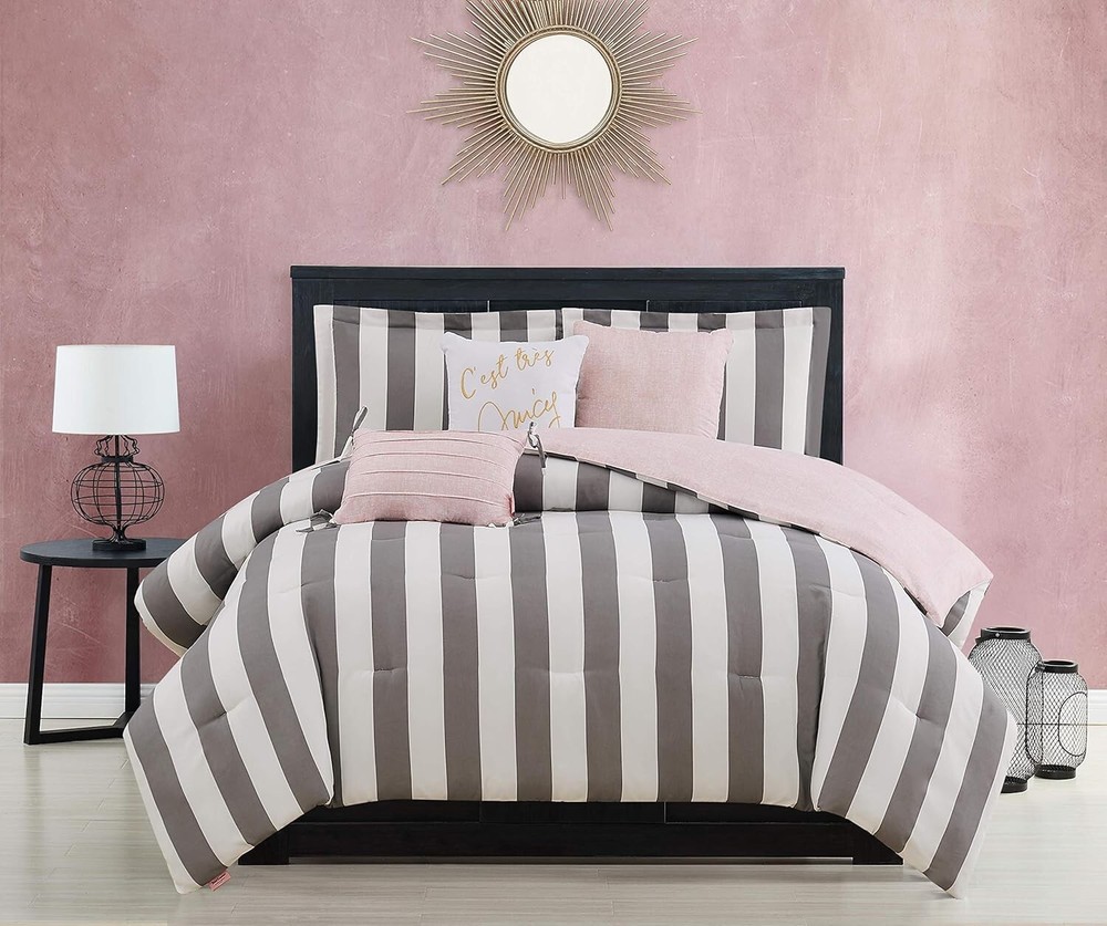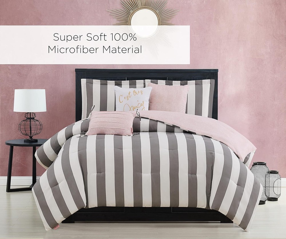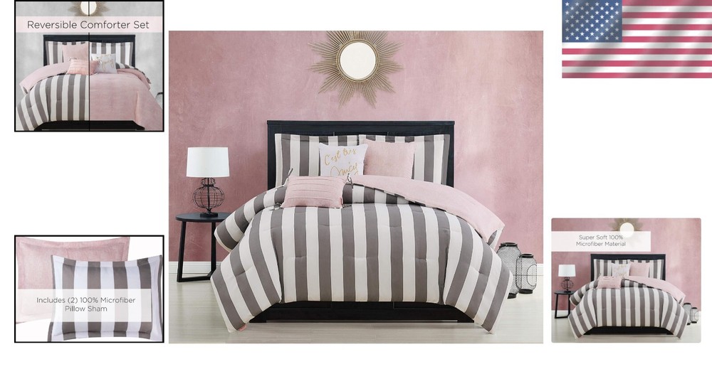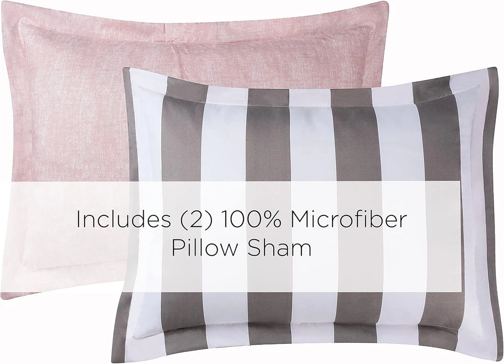 Elegant Grey White Stripe Reversible King Size Comforter Set