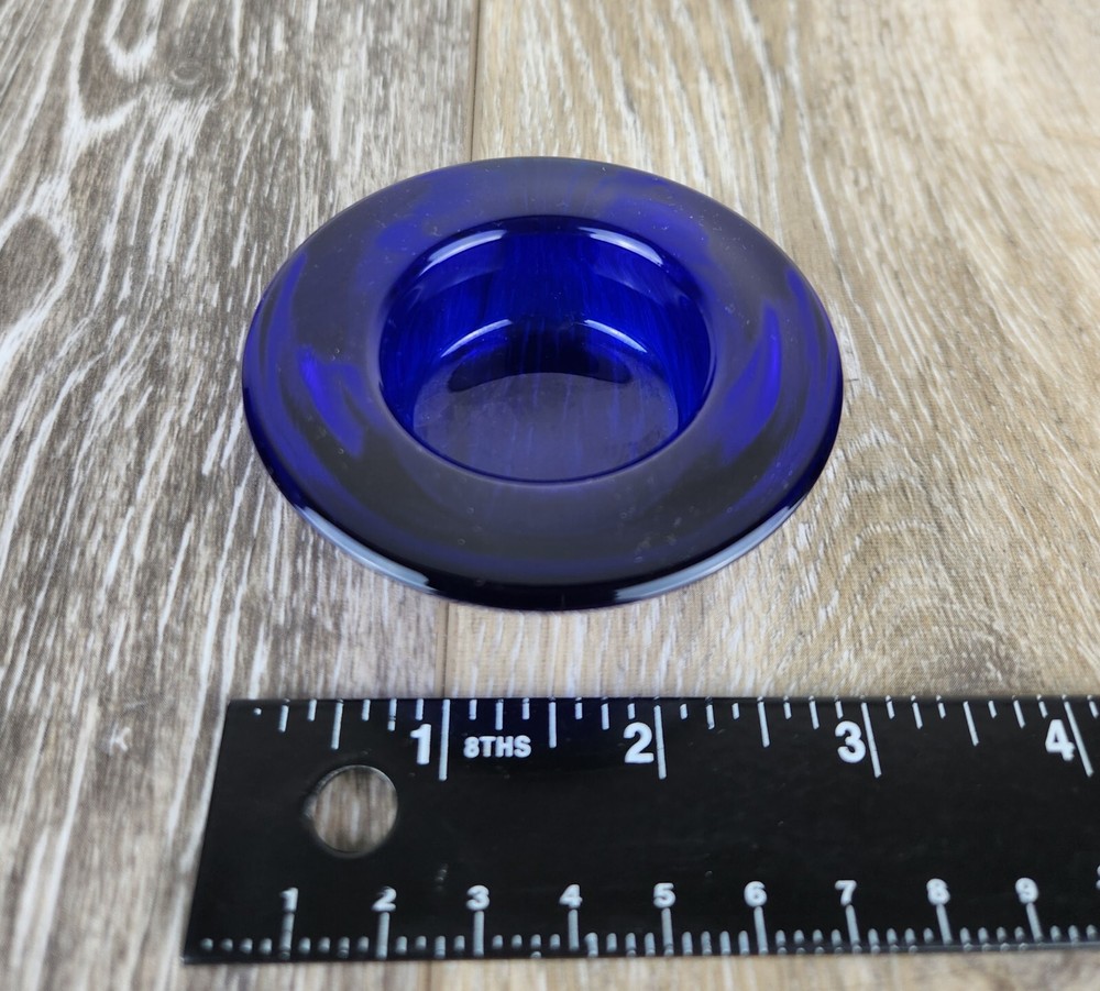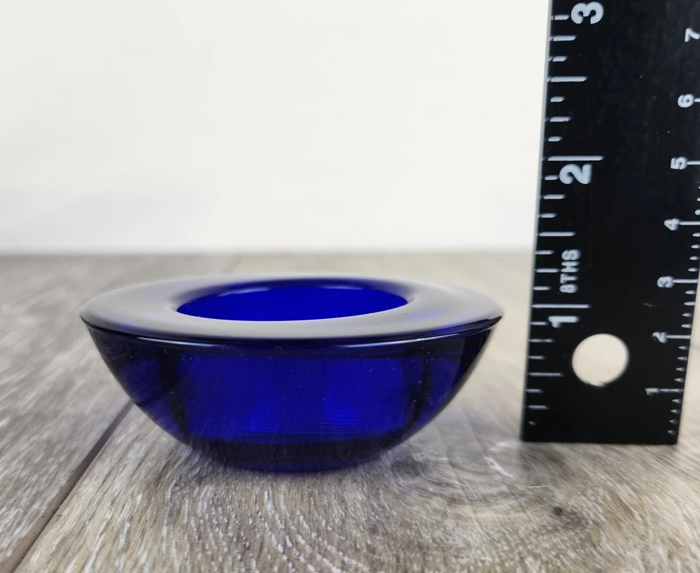 Add bold color and timeless charm to your space with this cobalt blue heavy glass votive candle holder. Crafted from thick glass with a solid feel, it’s perfect for holding tealights or small votive candles. The rich blue hue glows beautifully when lit, casting a cozy and vibrant ambiance. This bowl-style holder fits into vintage, boho, coastal, or eclectic home decor styles. Whether you're styling a centerpiece, planning a blue-themed event, or simply love colorful candlelight, this piece is a must-have. *Excellent condition!
