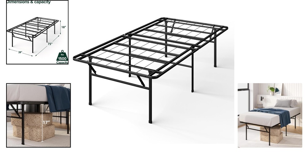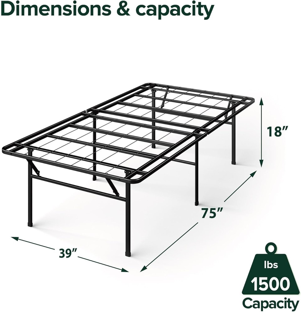 Elegant Heavy Duty SmartBase Twin Mattress Foundation - No Box Spring Needed ‹ › ‹ › ‹ › ‹ › ‹ › ‹ › ‹ › ‹ › ‹ › Elegant Heavy Duty SmartBase Twin Mattress Foundation - No Box Spring Needed - Strong and Durable Steel Features: Supports up to 3000 lbs, making it an exceptionally strong mattress foundation. Constructed with heavy gauge steel wires to eliminate the need for a box spring. Provides valuable underbed storage space for your belongings. Engineered for quick, tool-free assembly; simply unfold and rest your mattress. Twin and twin XL sizes support a maximum weight capacity of 1500 lbs, while all other sizes accommodate up to 3000 lbs. Comes with a worry-free 5- limited . Benefits: Sturdy support prevents mattress sagging over time. Easy storage solution with ample underbed clearance. Quick and hassle-free setup with no tools required. Protects your floors with recessed legs and plastic caps. Compatible with various mattress types: foam, latex, and spring. Why choose our Elegant Heavy Duty SmartBase? Transform your sleep experience with the Elegant Heavy Duty SmartBase, a remarkable mattress foundation designed to offer unparalleled strength and versatility. Crafted from heavy duty steel, this foundation effortlessly combines durability with significant underbed clearance for storage. Forget about unsightly box springs; instead, rest your mattress directly on the robust platform for optimal support. In addition to its strong construction capable of handling up to 3000 lbs, the SmartBase offers the ease of quick, tool-free assembly. In mere moments, you can elevate your sleep space, all while protecting your floors and maximizing storage. Don't just settle for any mattress foundation; choose the Elegant Heavy Duty SmartBase and enjoy a stable foundation that works as hard as you do. Order yours today and rest assured with a 5- limited ! Shipping Free & Fast Shipping - We offer free shipping to most of the USA with a normal delivery time of 3-7 days. However, due to the current situation, additional delivery time (up to 3 weeks) may be required for some items. Alternative Carriers - We may use alternative carriers (e.g. USPS, FedEx, UPS, etc.) to ensure your package arrives safely and on time. Due to the use of multiple carriers, we are unable to provide a tracking number automatically. Handling Time - Orders are processed and shipped within 1-2 business days of receiving cleared payment. Shipping Restrictions - Shipping to Alaska, Hawaii, Puerto Rico, Guam, and other US territories may incur shipping charges or delivery restrictions. Please contact us before ordering, or your order can be refunded/cancelled. State Restrictions - There may be restrictions based on your state of purchase. For example, certain items may not be shipped to California due to state regulations. Contact for Tracking Updates - If you require tracking updates or have any concerns about the delivery of your order, please feel free to contact us, and we will be happy to assist you. Return 30-Day Hassle-Free Returns - We want you to be completely satisfied with your purchase. If you are not, you can return the item within 30 days of receiving it for a full refund or exchange. Easy Return Process - To start a return, simply contact us and we will provide you with a prepaid return shipping label and detailed instructions. Restocking Fee - There are no restocking fees for returns. However, the buyer is responsible for return shipping costs if the return is not due to a seller's error. Refund Processing Time - Refunds will be processed within 5 business days of receiving the returned item in its condition. Payment We accept all major credit cards, PayPal, and Apple Pay for your convenience. Your payment information is secure and encrypted to ensure a safe and seamless transaction. Please complete your payment within 3 days of purchase to avoid any delays in shipping. Feedback Your feedback is extremely important to us. We strive to provide the best products and customer service possible. If you are satisfied with your purchase, please take a moment to leave us a positive review. If you have any concerns or issues with your order, please contact us before leaving negative feedback. We are committed to resolving any problems and ensuring your satisfaction. Contact Us If you have any questions or concerns, please feel free to out to our customer support team. You can contact us through the eBay messaging system. We are available Monday to Friday, 9:00 am to 5:00 pm EST, and we will do our best to respond to your inquiry within 24 hours. Buy it now and enjoy a pleasant shopping experience! EPREL Registration Number: 841550084016 Unit Quantity: 1.0 Compatible Mattress Size: Twin Frame Material: Steel,Alloy Steel Features: Quick, Tool-Free Assembly,Underbed Storage,Recessed Legs Care Instructions: Wipe with Dry Cloth Department: Adults Type: Platform Bed Color: Black Finish: Painted Style: Contemporary/Modern Number of Drawers: 0 Shape: Rectangular Room: Bedroom Item Weight: 21.38 lb Distance from Floor to Bottom: None