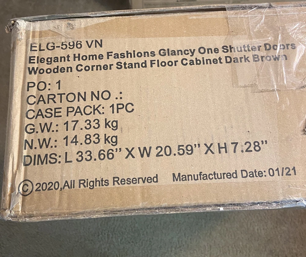 Elegant Home Fashions Glancy One Shutter Doors Wooden Corner Stand Floor Cabinet.