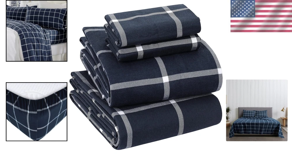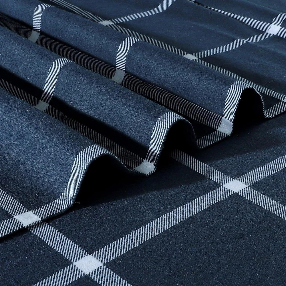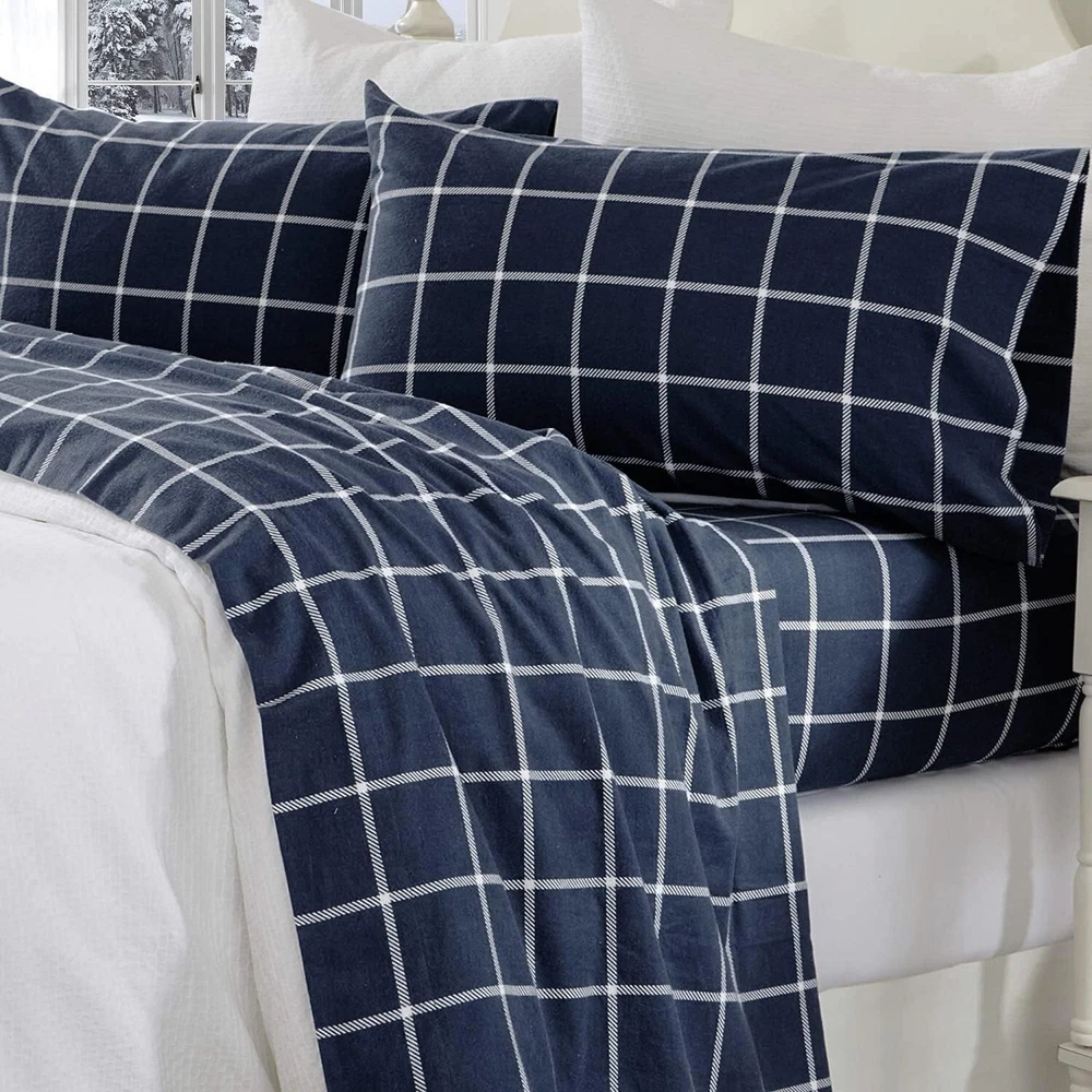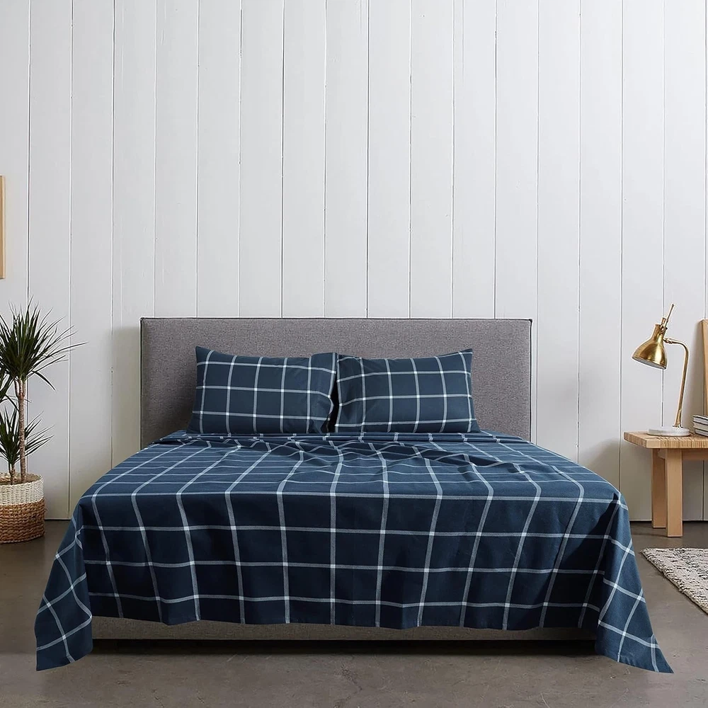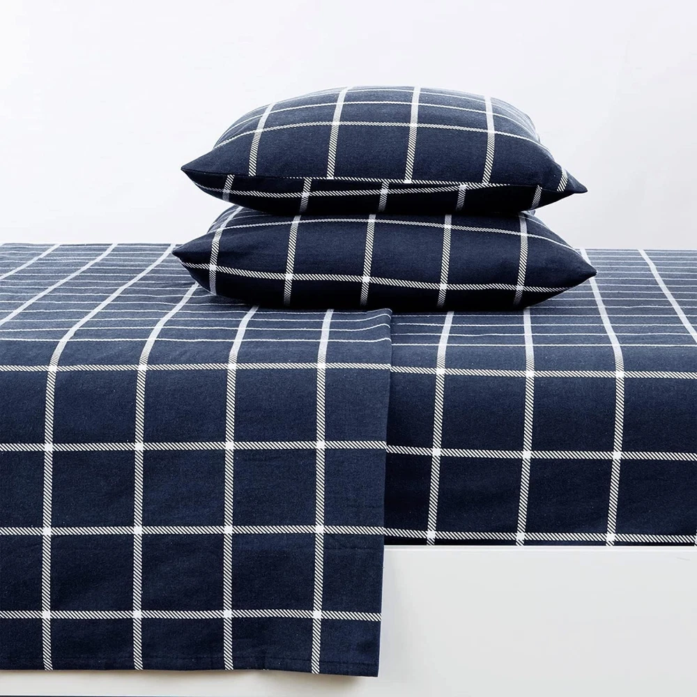 Type: Sheet Set Shape: Rectangular Size: King Unit Count: 1.0 Count Number Of Pieces: 4 Style: Modern Pillowcase Quantity: 2 UPC: Does not apply Item Display Dimensions: 12 X 10 X 7.5 Inches Cartoon Character: Checkered Included Components: Pillowcases, Fitted Sheet, Flat Sheet Product Care Instructions: Machine Wash Brand: Unbranded Finish Types: 100% Brushed Cotton Flannel GSM (Grams per Square Meter): Over 800 Item Dimensions L X W X H: 12 X 10 X 7.5 Inches Pillowcase Length: 2e+1 Inches Material: 100% Cotton, Flannel, Brushed Cotton Flannel Age Range (description): Adult, Teens, Kids Weave Type: Flannel Fabric Type: 100% Brushed Cotton Flannel Item Weight: 6.01 Pounds Features: Machine Washable, Pill Resistance, 360° Elastic Fit, Deep Pocket, Breathable Product Dimensions: 12 X 10 X 7.5 Inches Color: Navy Checks Closure Type: Zipper Fitted Sheet Pocket Depth: 16 Inches Room: Bedroom Batteries Required: No Pattern: Checkered Theme: Winter Seasons: All, Winter, Summer, Fall, Spring Department: Unisex Baby & Toddler, Adults, Teens, Kids Care Instructions: Machine Wash Perfume: Unscented gtin13: Does not apply Thread Count: 160